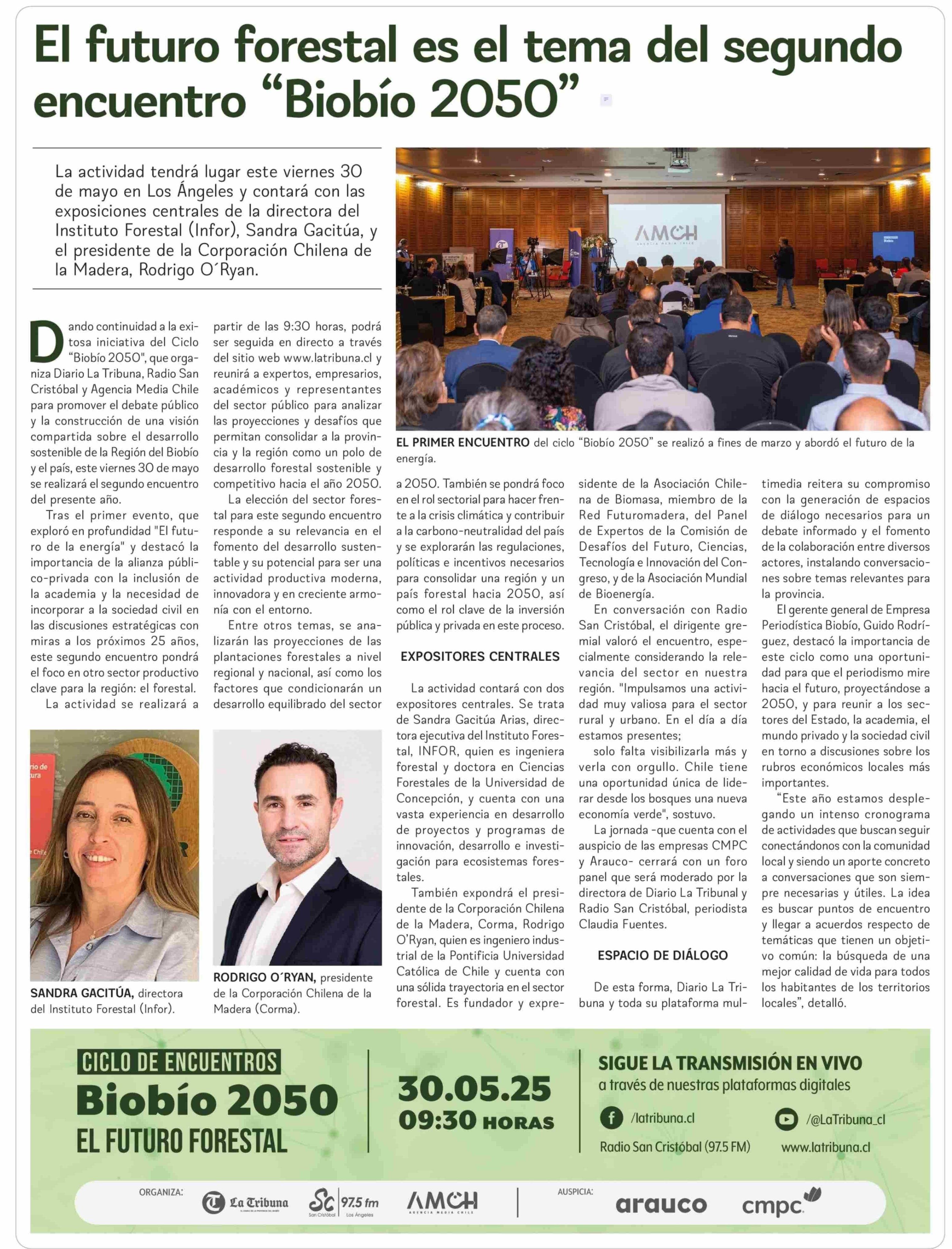 El futuro forestal es el tema del segundo encuentro “Biobío 2050” 26-05-2025 La Tribuna |