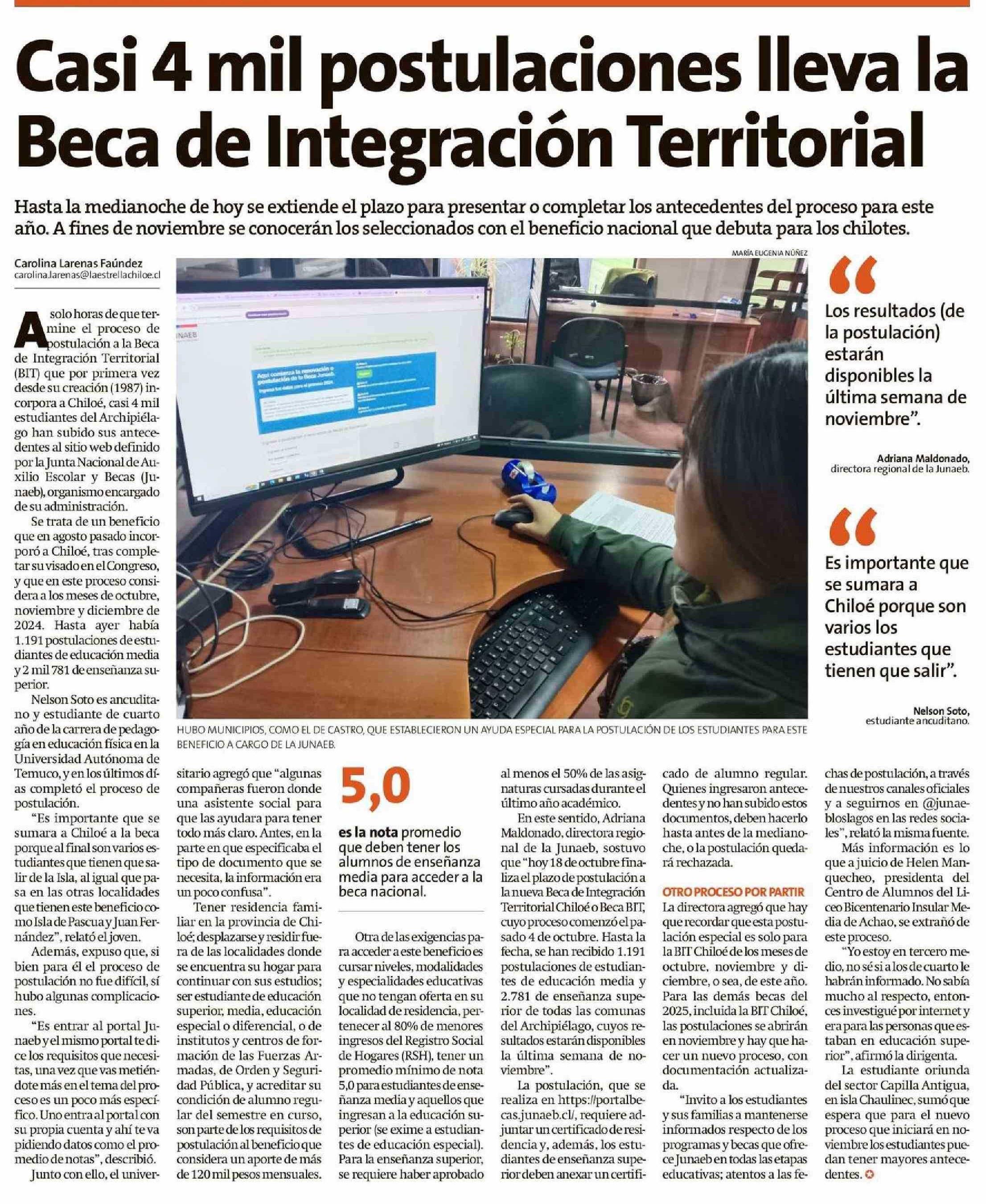 Título: Casi 4 mil postulaciones lleva la Beca de Integración Territorial