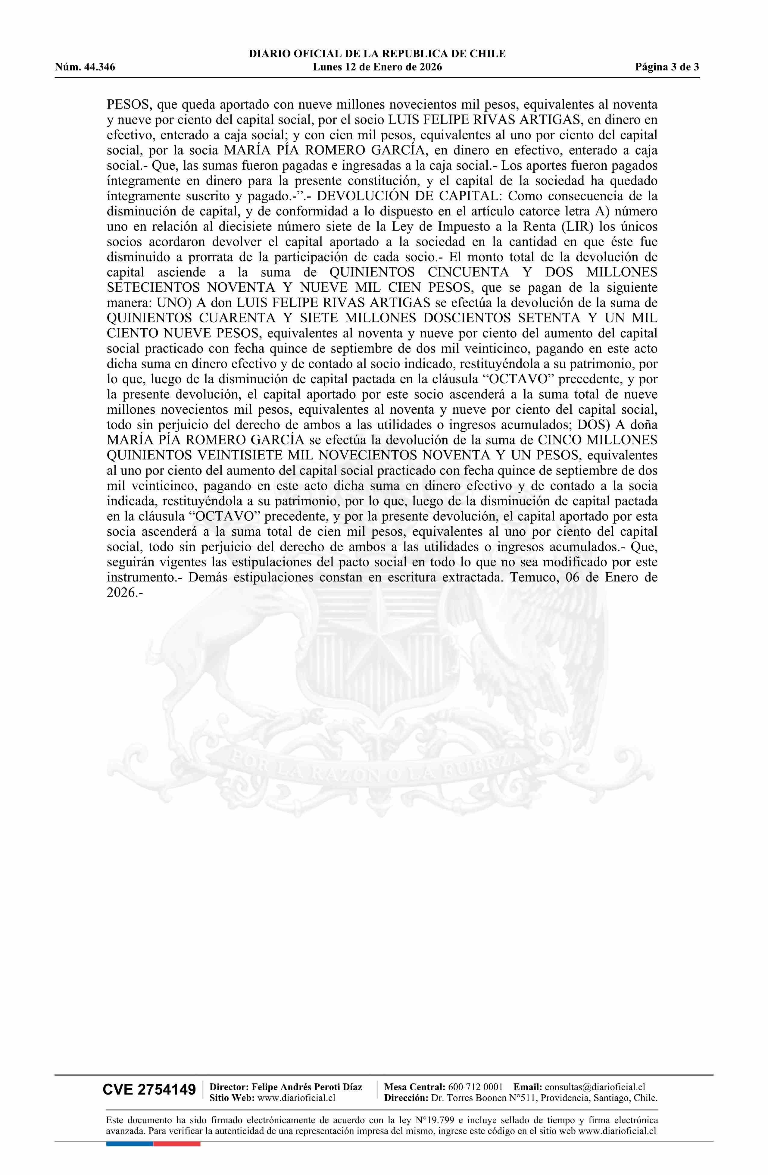 CONSTRUCTORA R & R LIMITADA 76.007.713-5 12-01-2026 Diario Oficial Edición Electrónica |