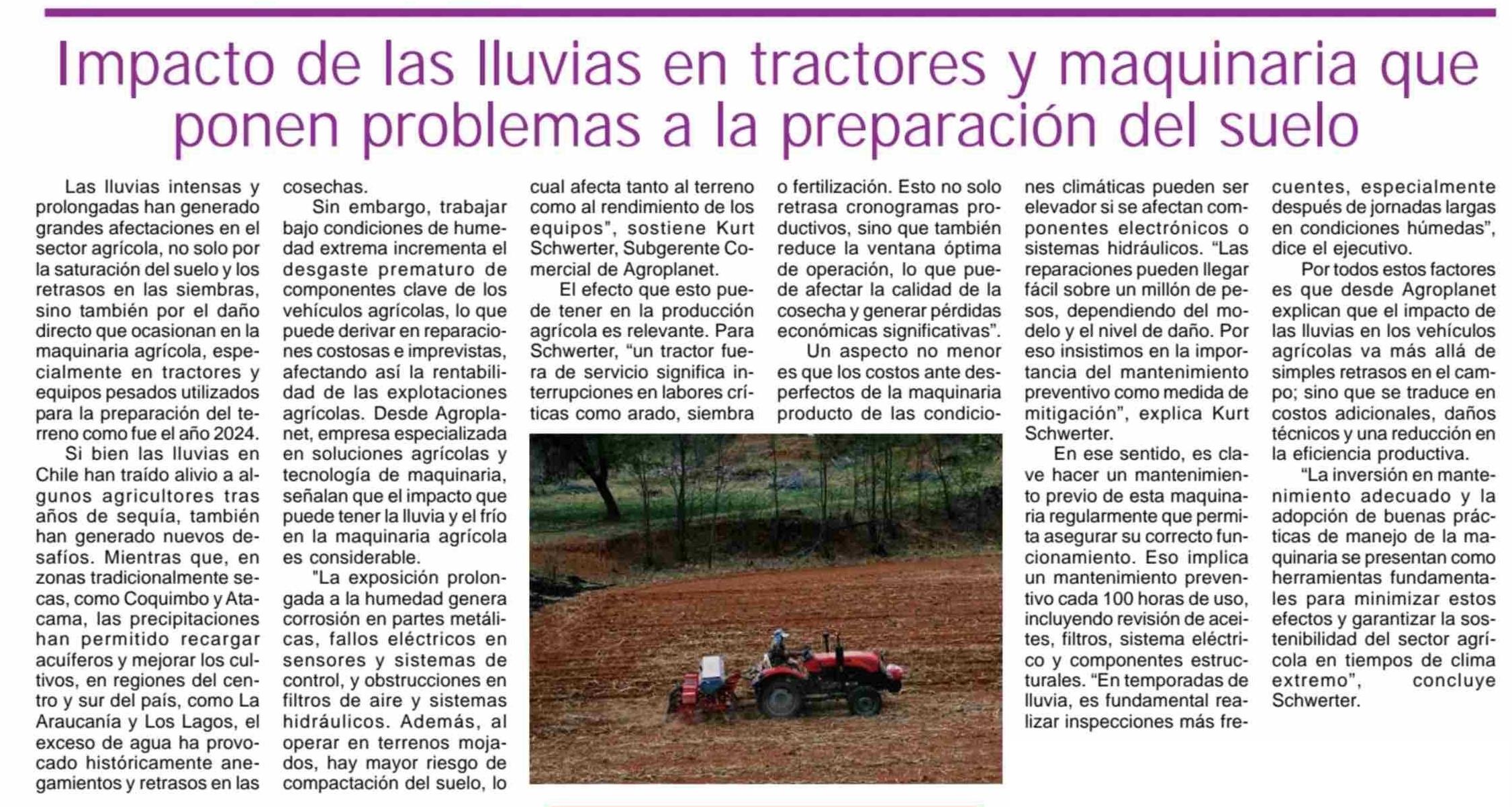 Impacto de las lluvias en tractores y maquinaria que ponen problemas a la preparación del suelo 20-06-2025 Maule Hoy |