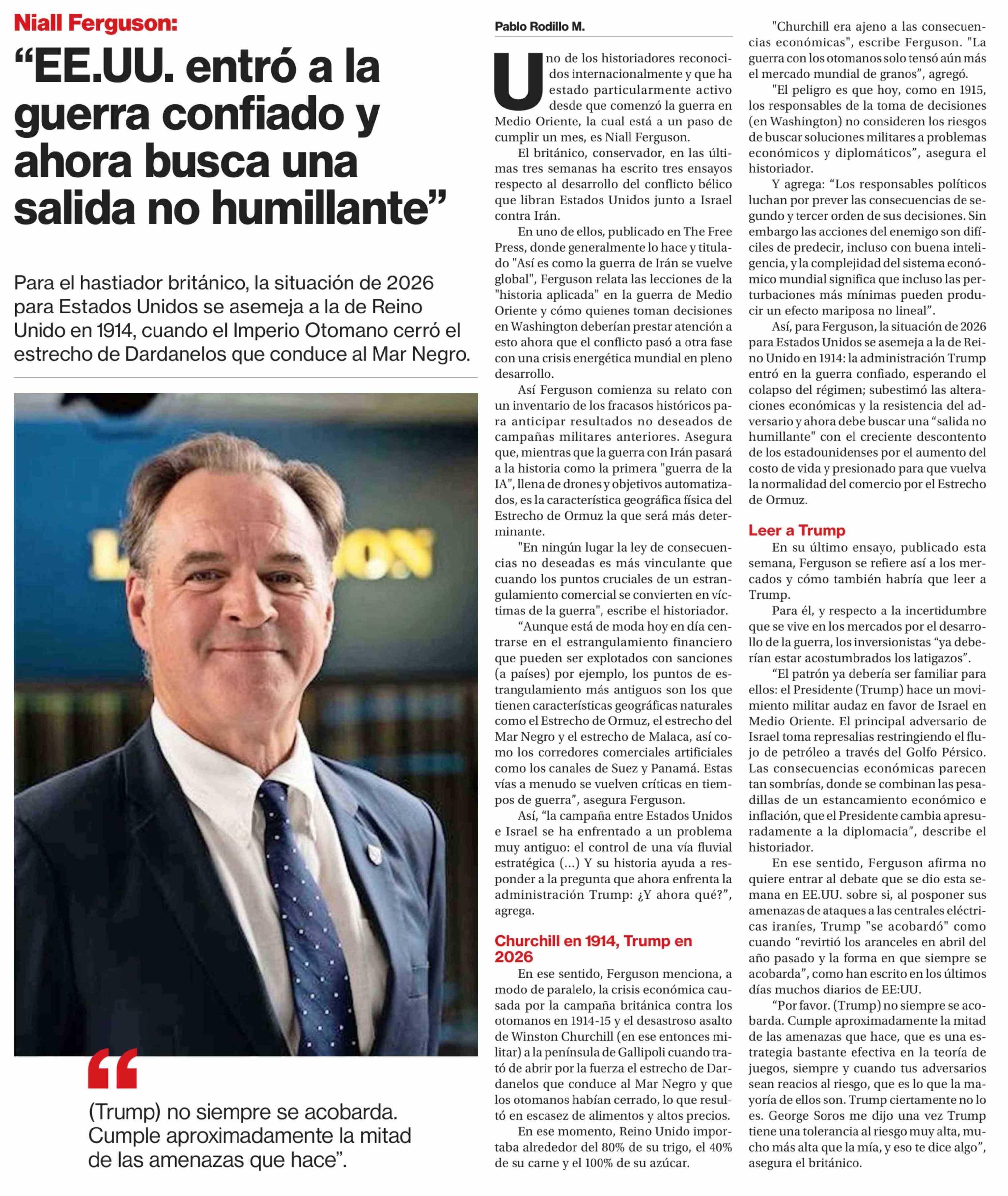 "EE.UU. entró a la guerra confiado y ahora busca una salida no humillante" 26-03-2026 La Segunda |