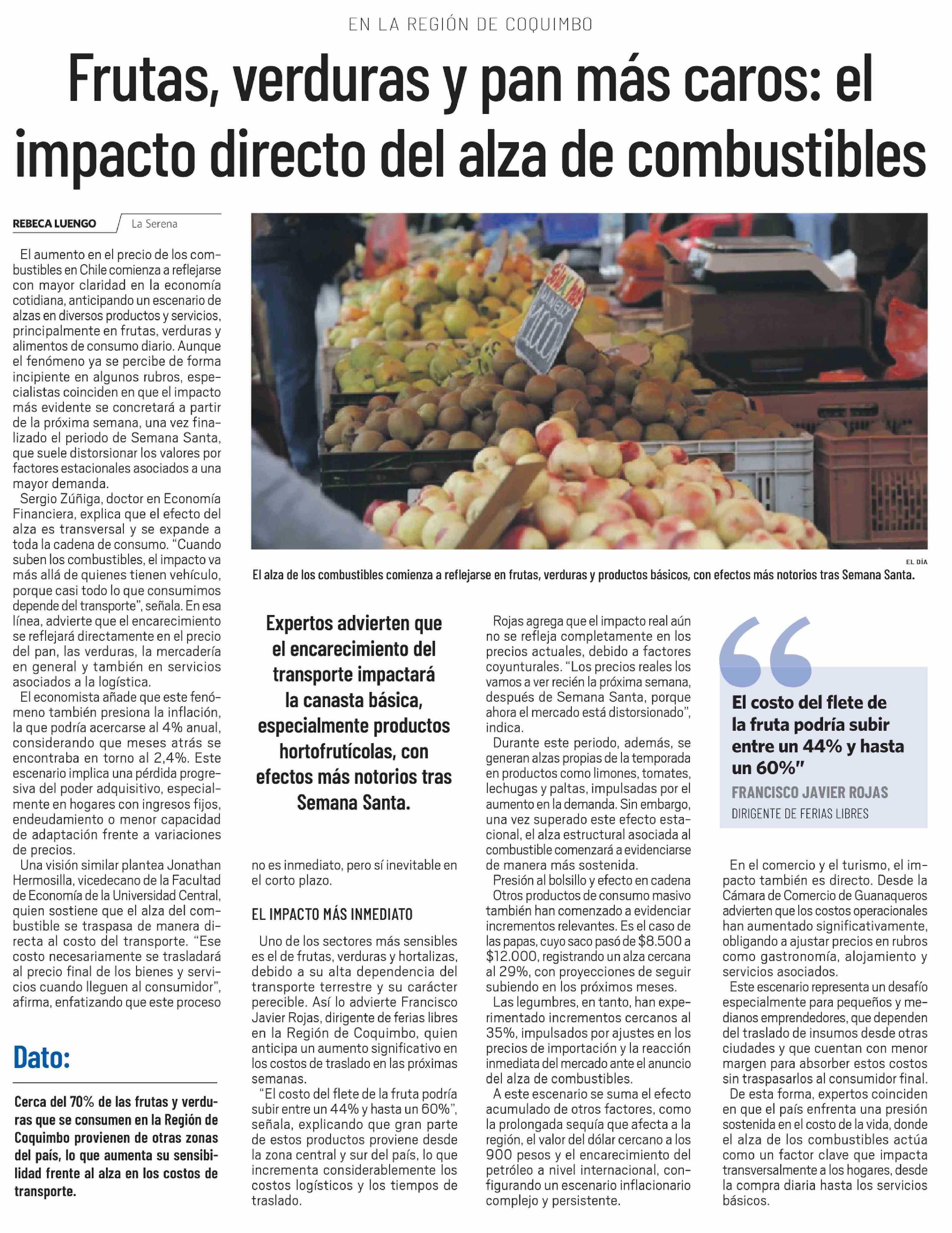 Frutas, verduras y pan más caros: el impacto directo del alza de combustibles 05-04-2026 El Día |