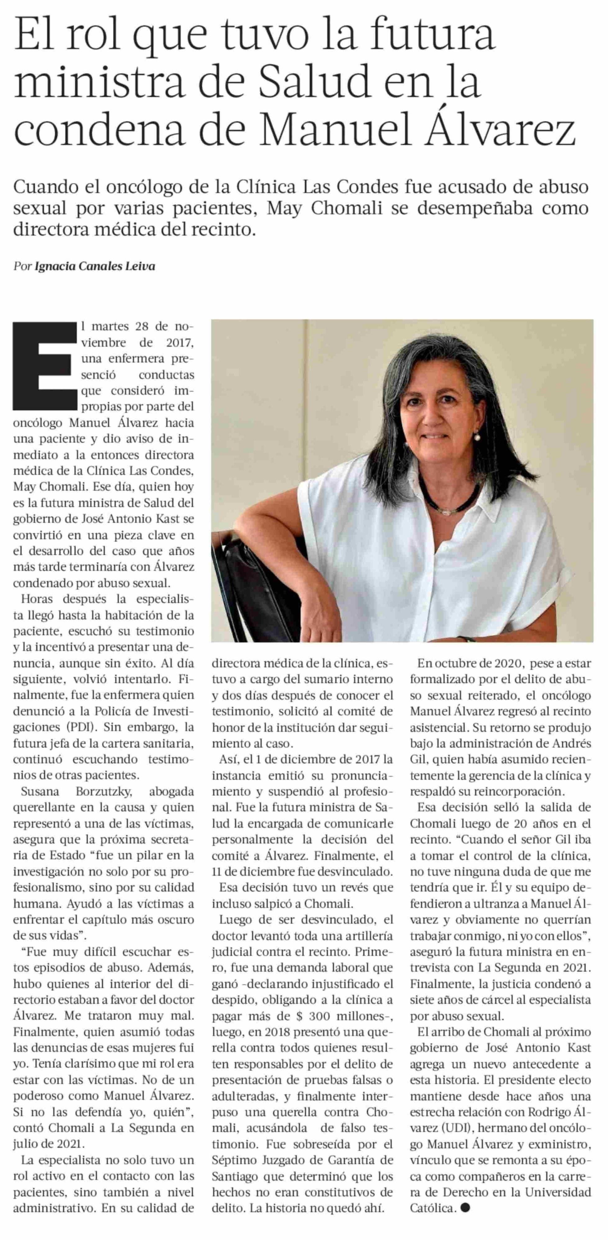 | Título: | El rol que tuvo la futura ministra de Salud en la condena de Manuel Álvarez |