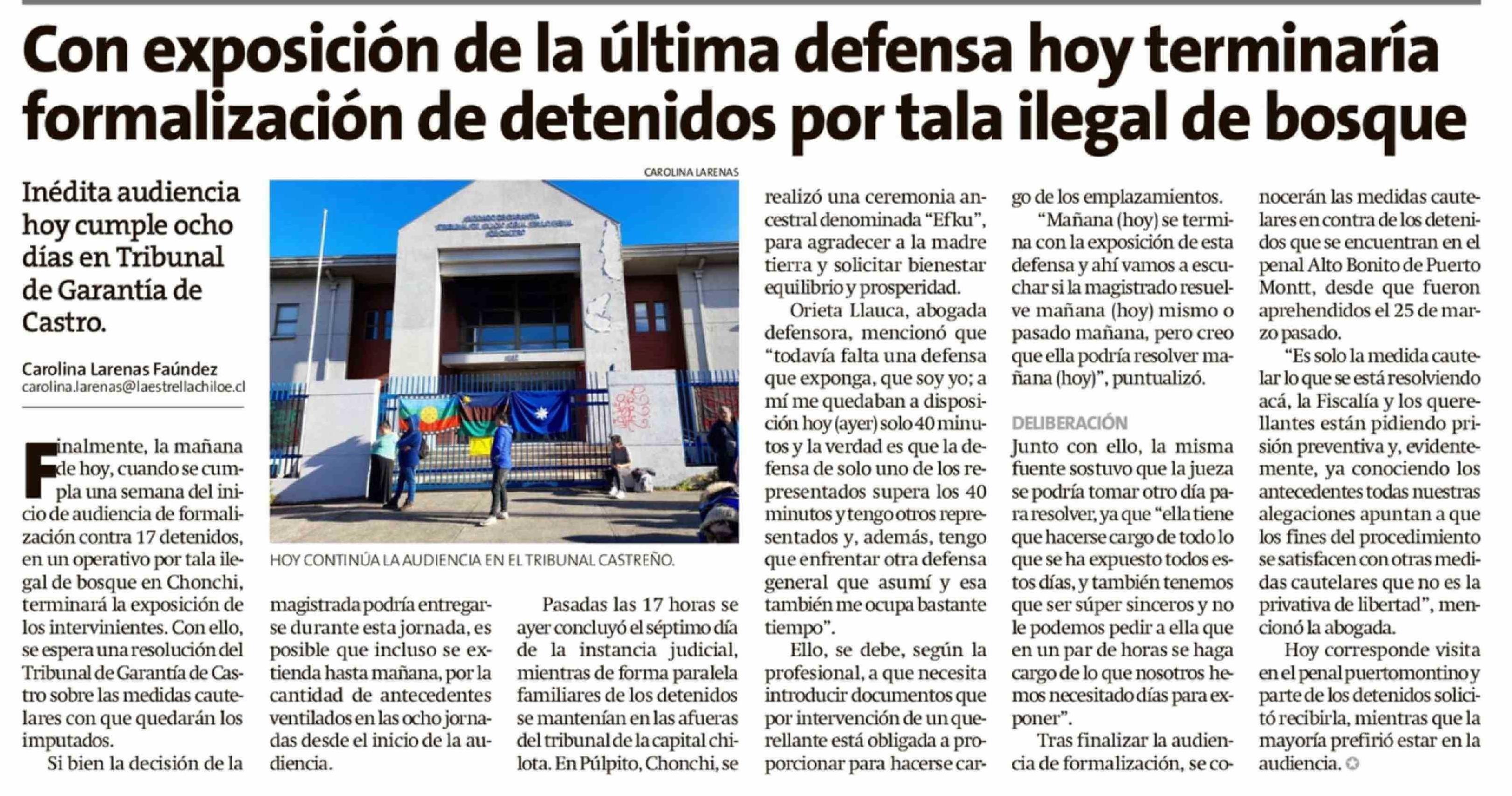 Título: Con exposición de la última defensa hoy terminaría formalización de detenidos por tala ilegal de bosque