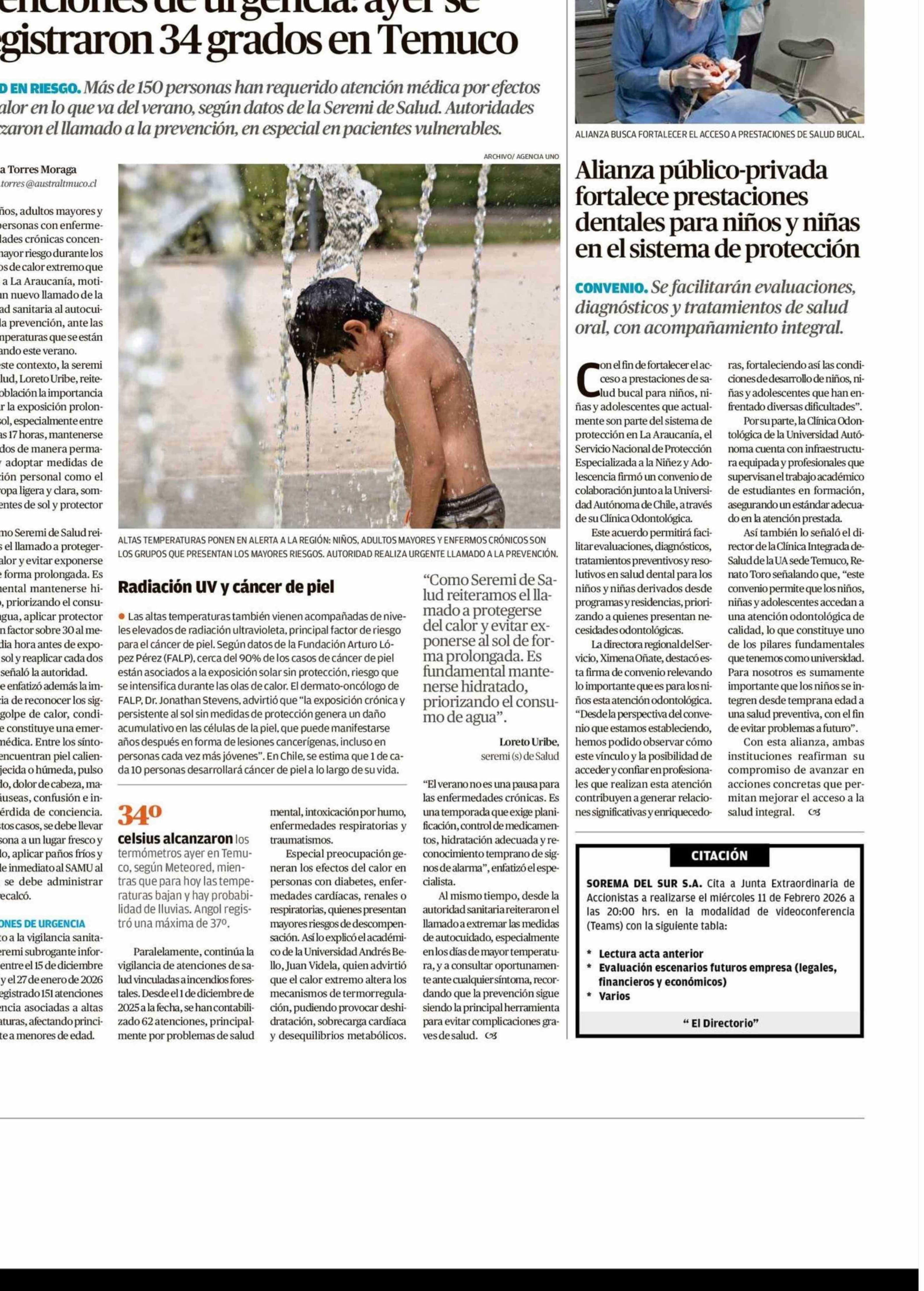 Fecha: 30-01-2026 Sector: Noticia general Región: Región de la Araucanía