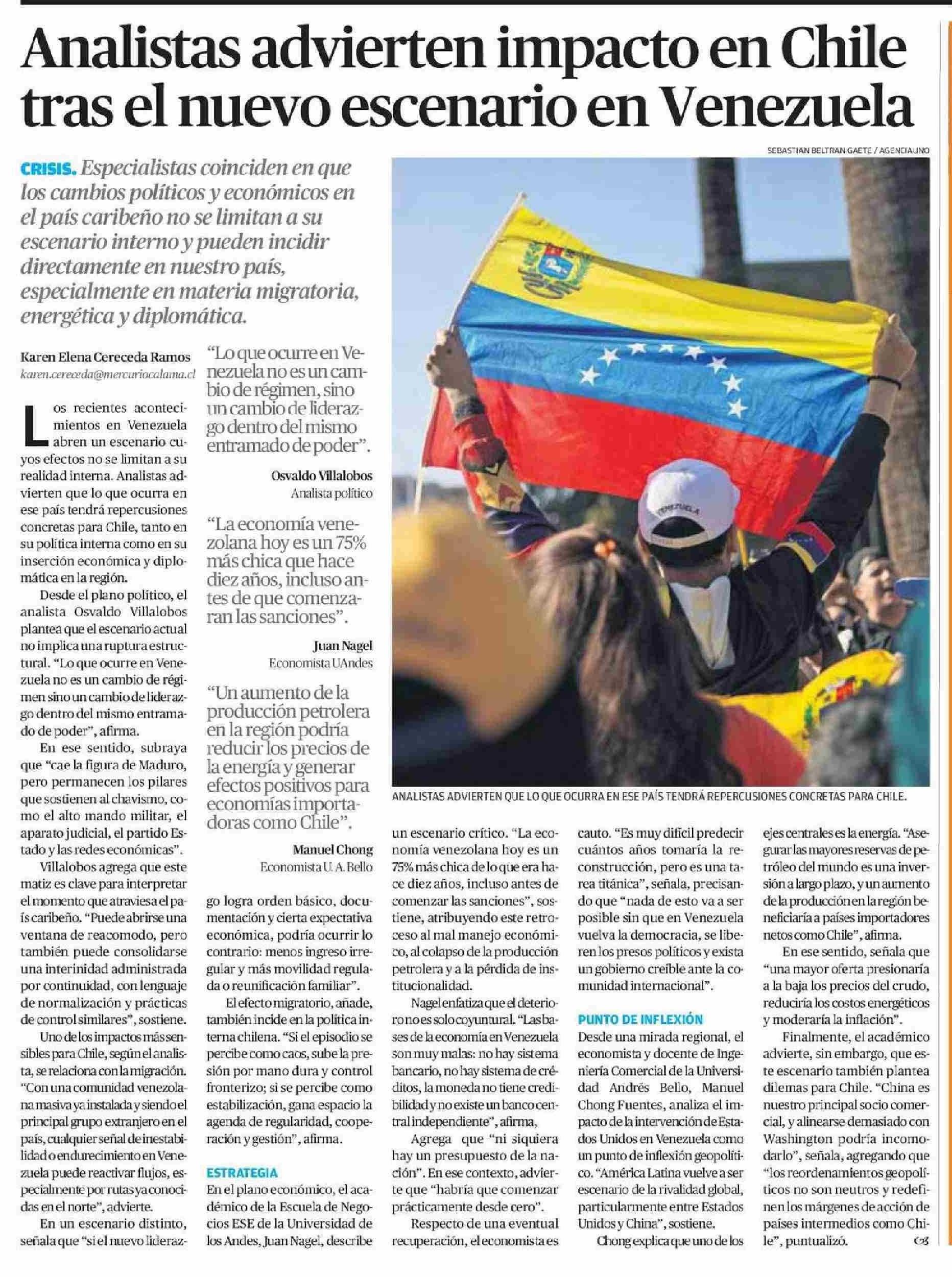 Analistas advierten impacto en Chile tras el nuevo escenario en Venezuela 07-01-2026 El Mercurio de Calama |