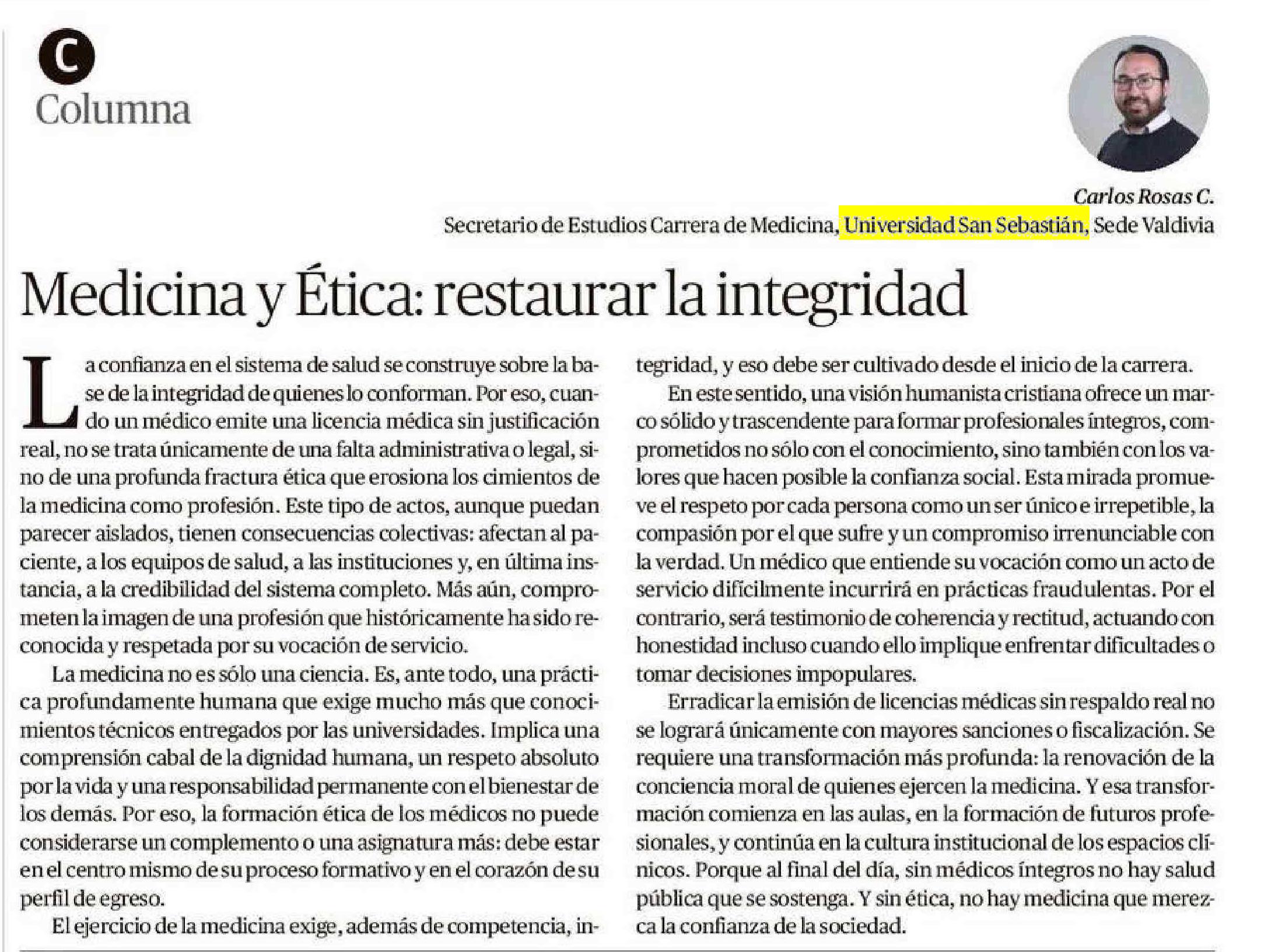COLUMNAS DE OPINIÓN: restaurar la integridad 06-06-2025 Diario Austral Región de Los Ríos |