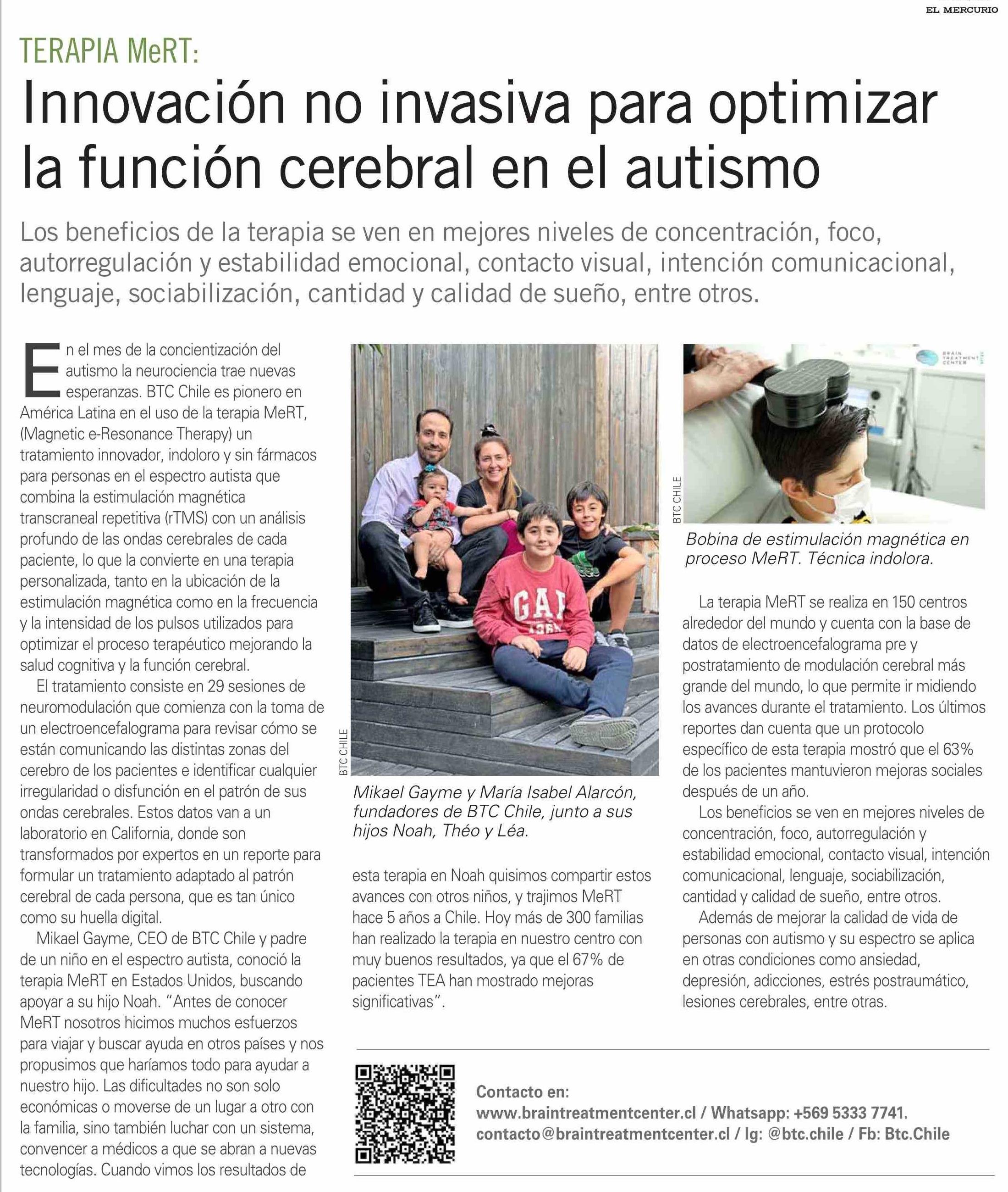 Innovación no invasiva para optimizar la función cerebral en el autismo 01-04-2025 El Mercurio |