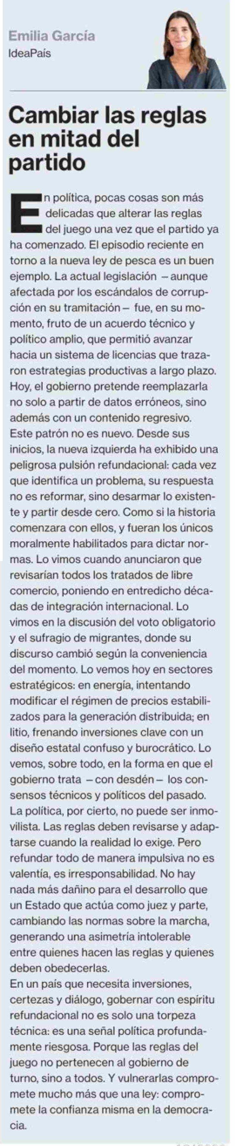 COLUMNAS DE OPINIÓN: Cambiar las reglas en mitad del partido 14-05-2025 La Segunda |