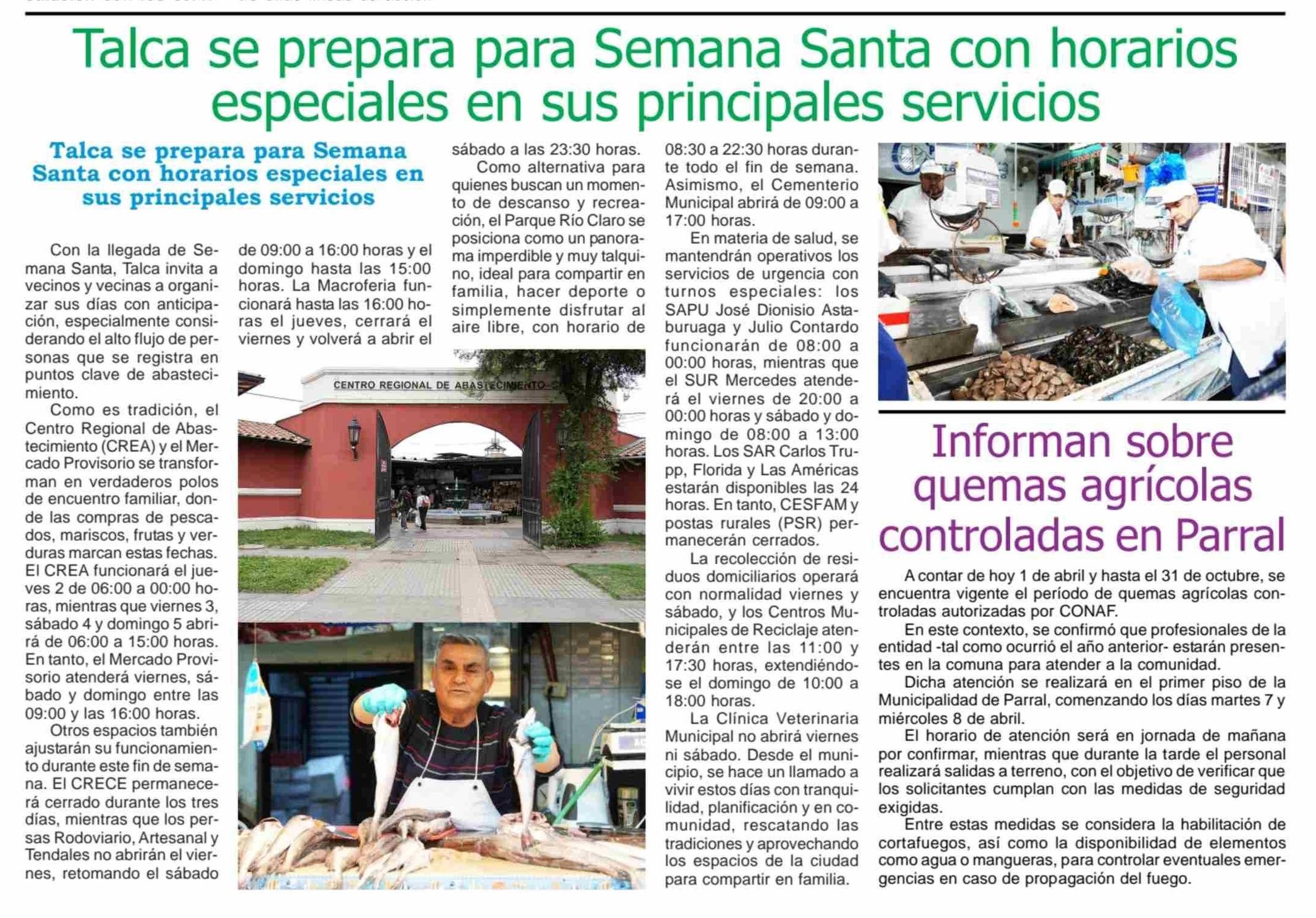 Talca se prepara para Semana Santa con horarios especiales en sus principales servicios 02-04-2026 Maule Hoy |
