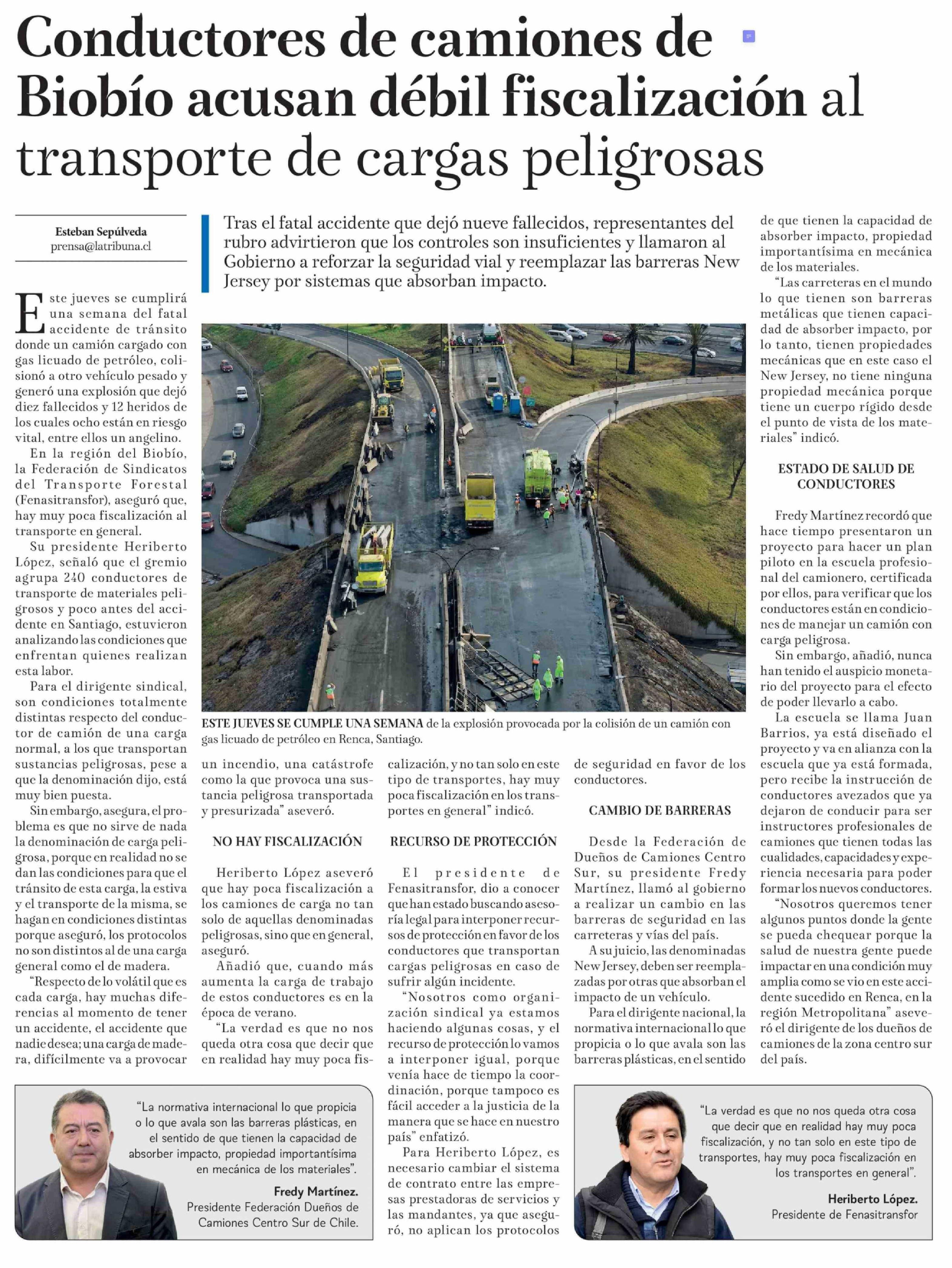 Conductores de camiones de Biobío acusan débil fiscalización al transporte de cargas peligrosas 25-02-2026 La Tribuna |