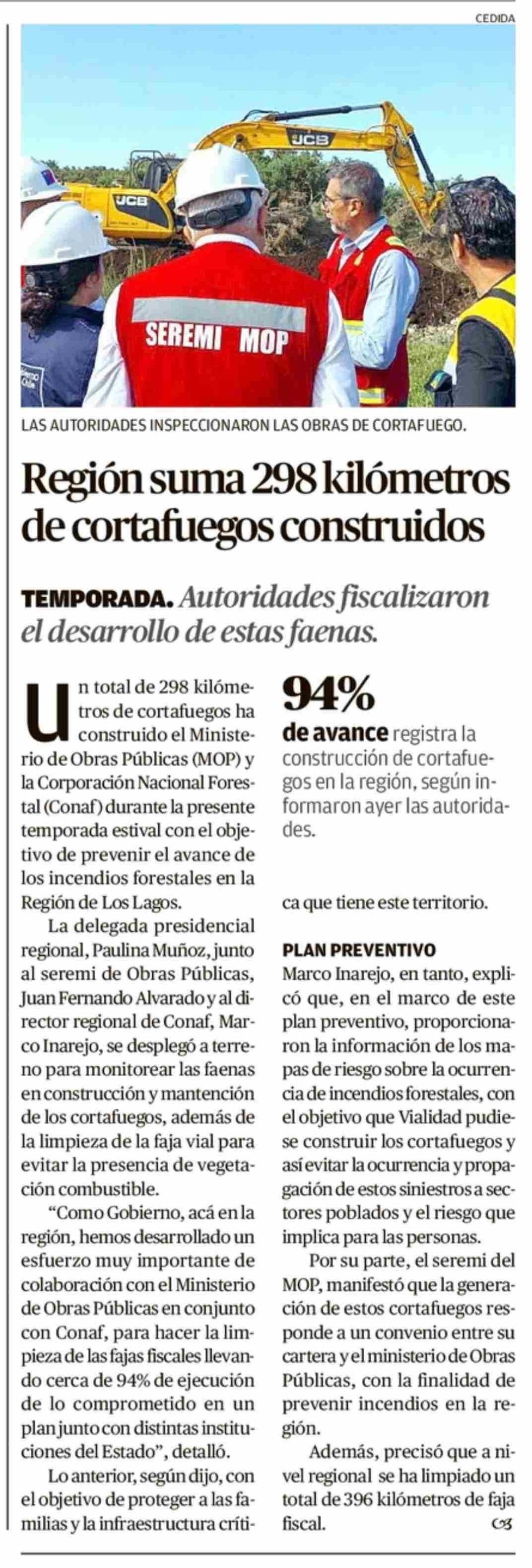 Título: Región suma 298 kilómetros de cortafuegos construidos