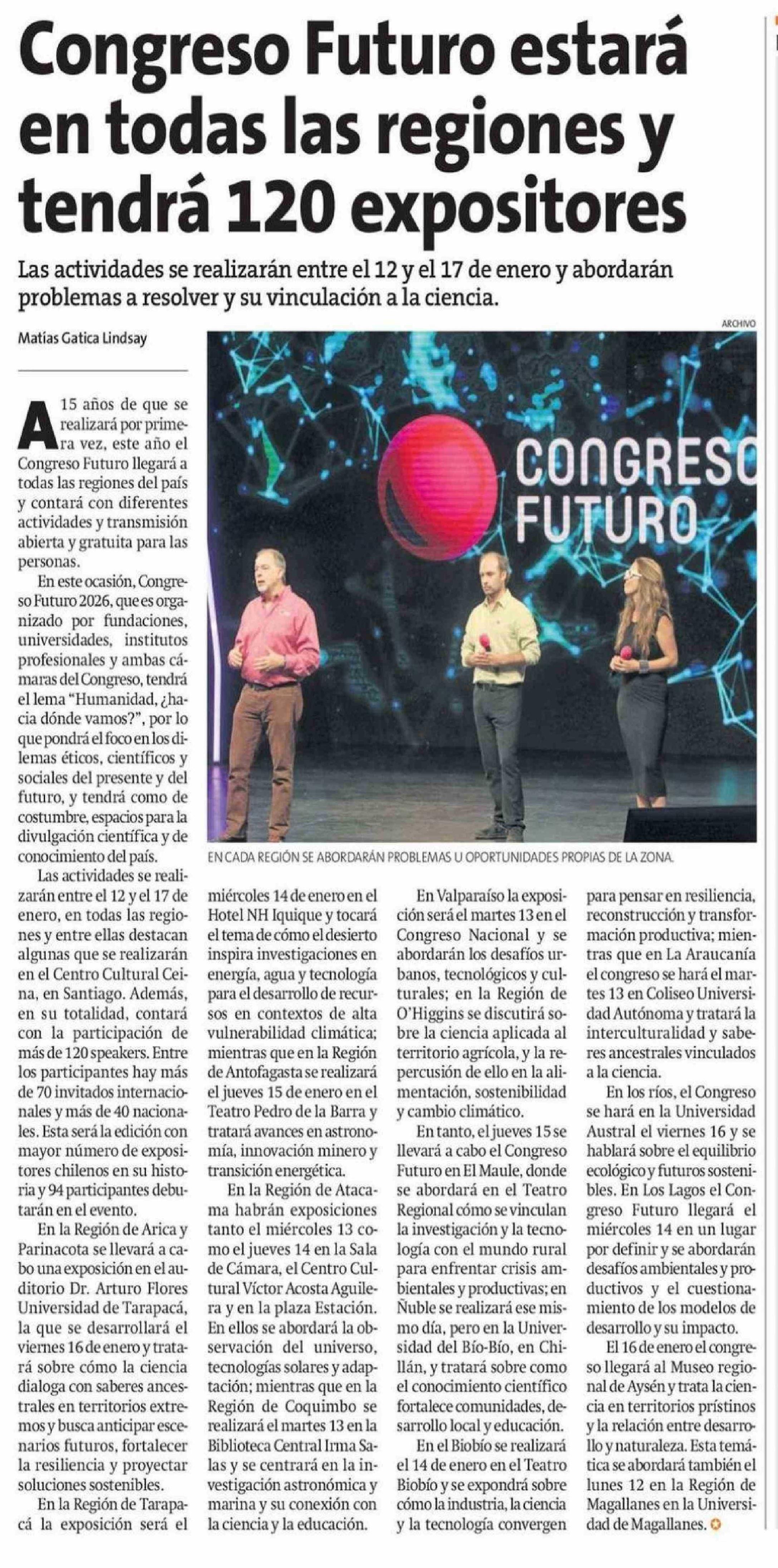Congreso Futuro estará en todas las regiones y tendrá 120 expositores 05-01-2026 La Estrella de Antofagasta |