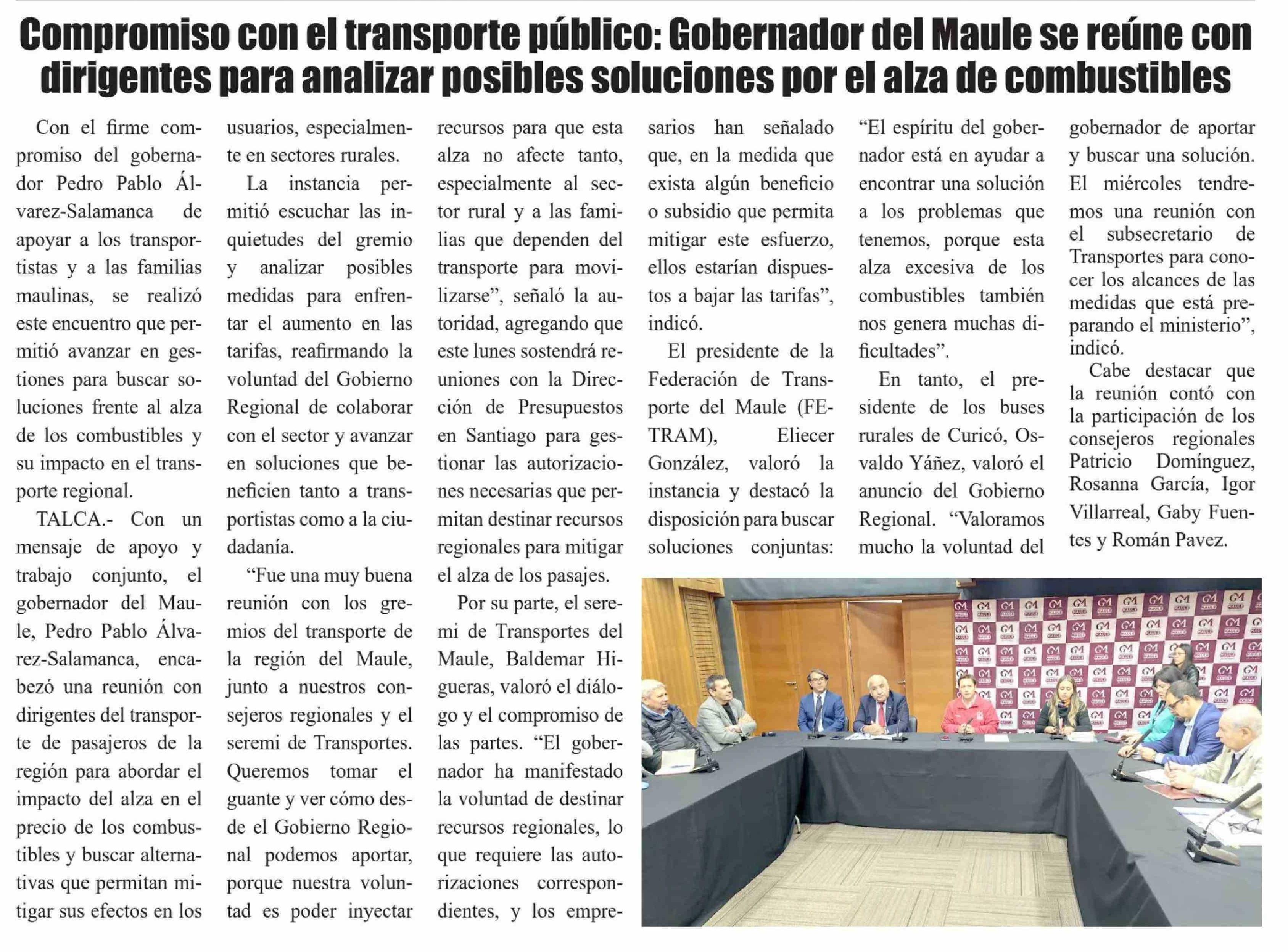 Compromiso con el transporte público: Gobernador del Maule se reúne con dirigentes para analizar posibles soluciones por el alza de combustibles 01-04-2026 El Heraldo |