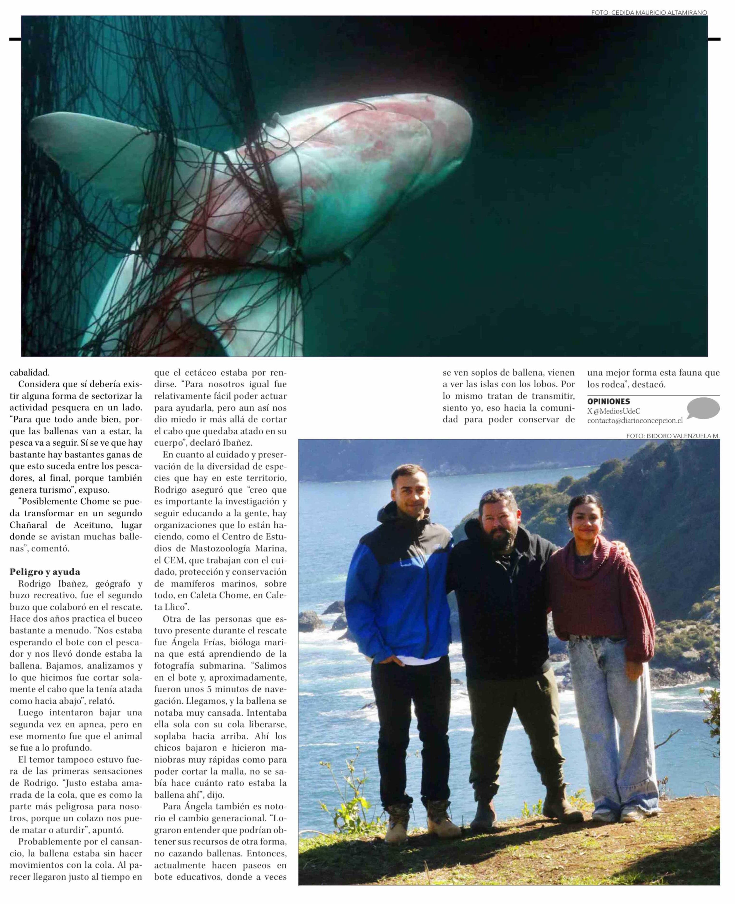 Rescate de una ballena en Caleta Chome: reflejo de una nueva forma de convivencia con los gigantes del mar 27-04-2026 Diario Concepción |