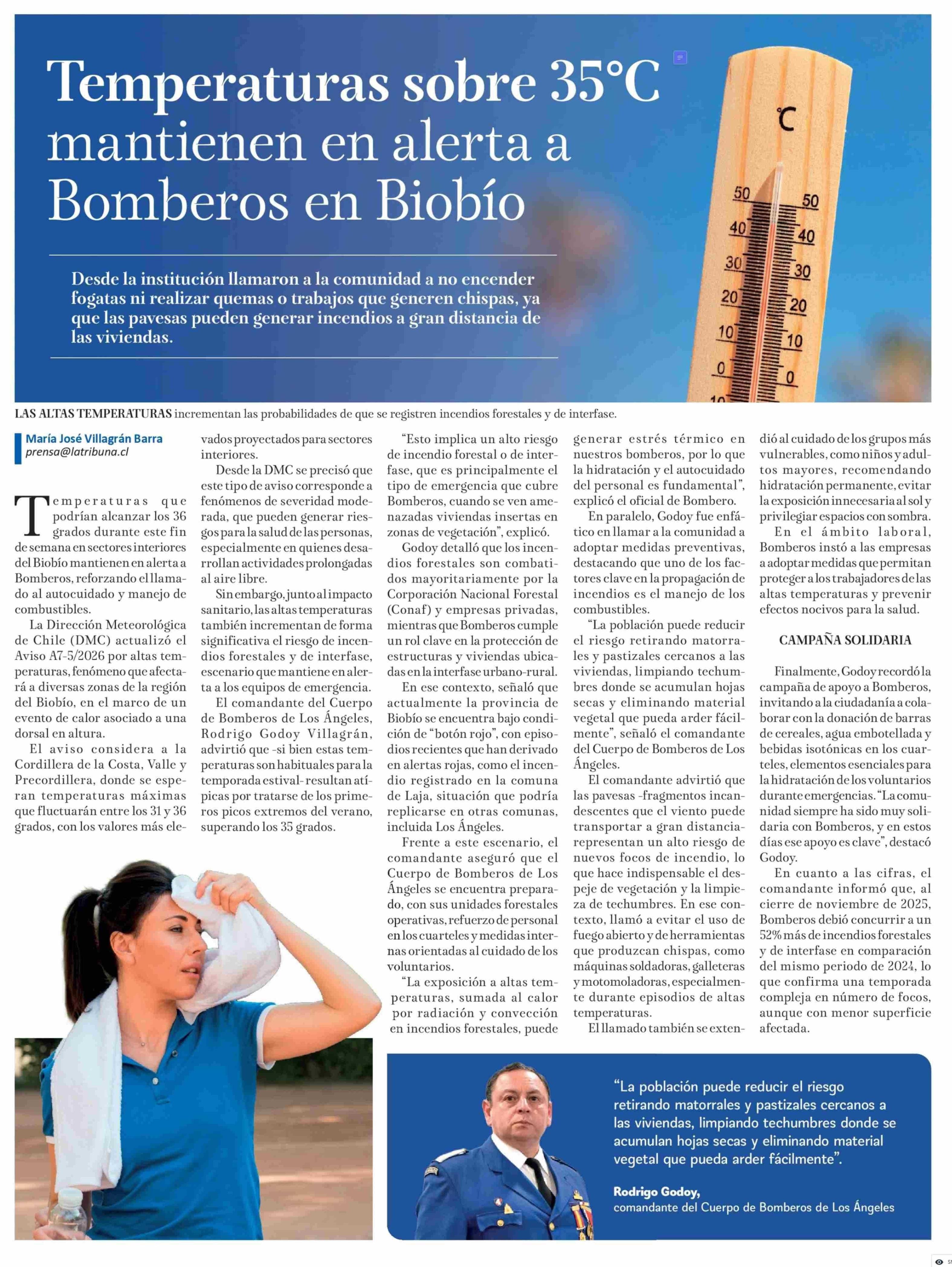 Temperaturas sobre 35°? mantienen en alerta a Bomberos en Biobío 10-01-2026 La Tribuna |