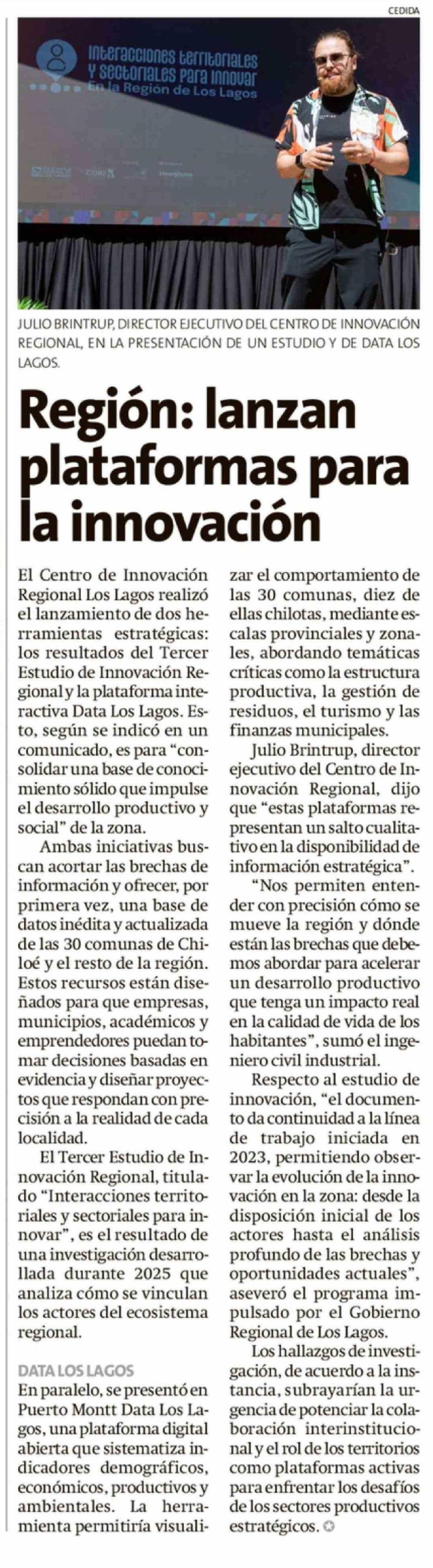 Región: lanzan plataformas para la innovación 20-02-2026 La Estrella de Chiloé |