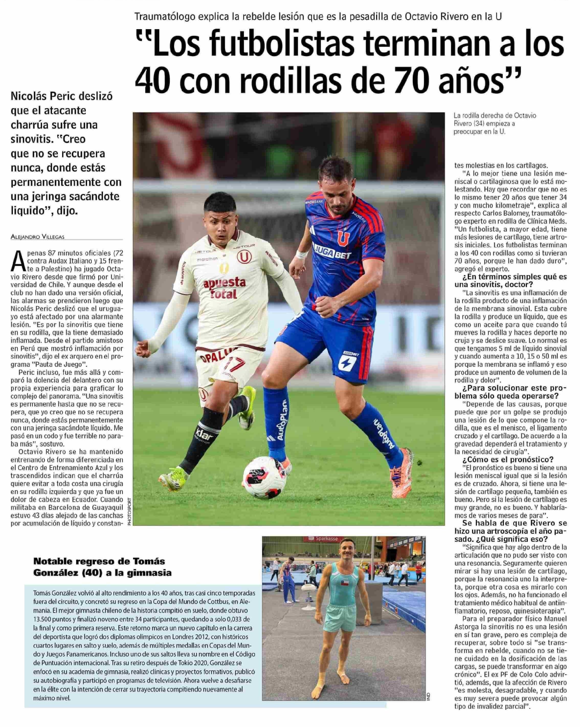 "Los futbolistas terminan a los 40 con rodillas de 70 años" 21-02-2026 Las Últimas Noticias |
