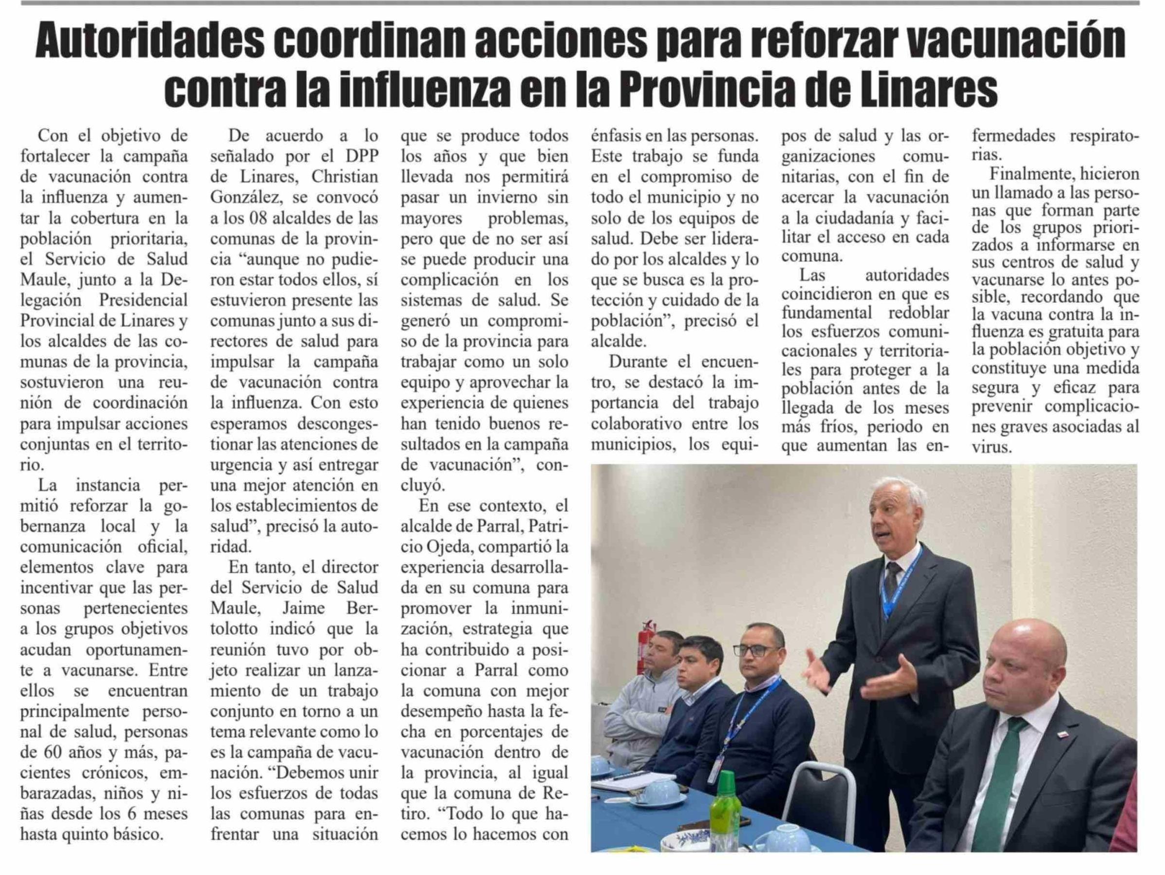 Autoridades coordinan acciones para reforzar vacunación contra la influenza en la Provincia de Linares 18-04-2026 El Heraldo |