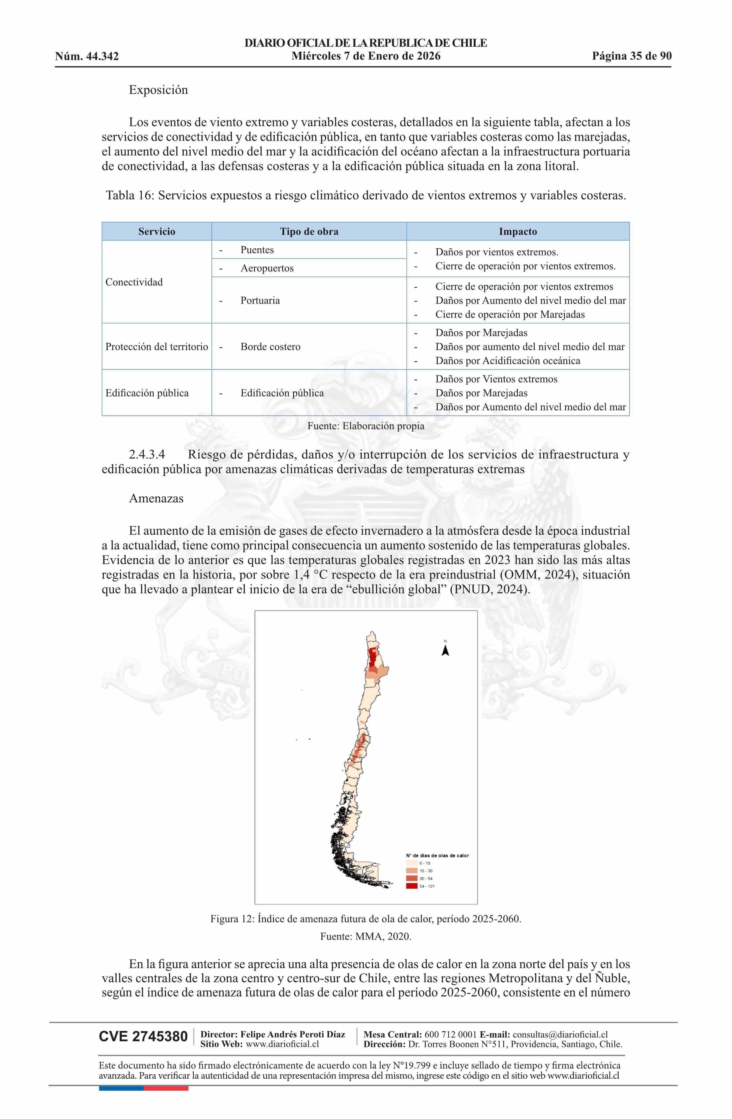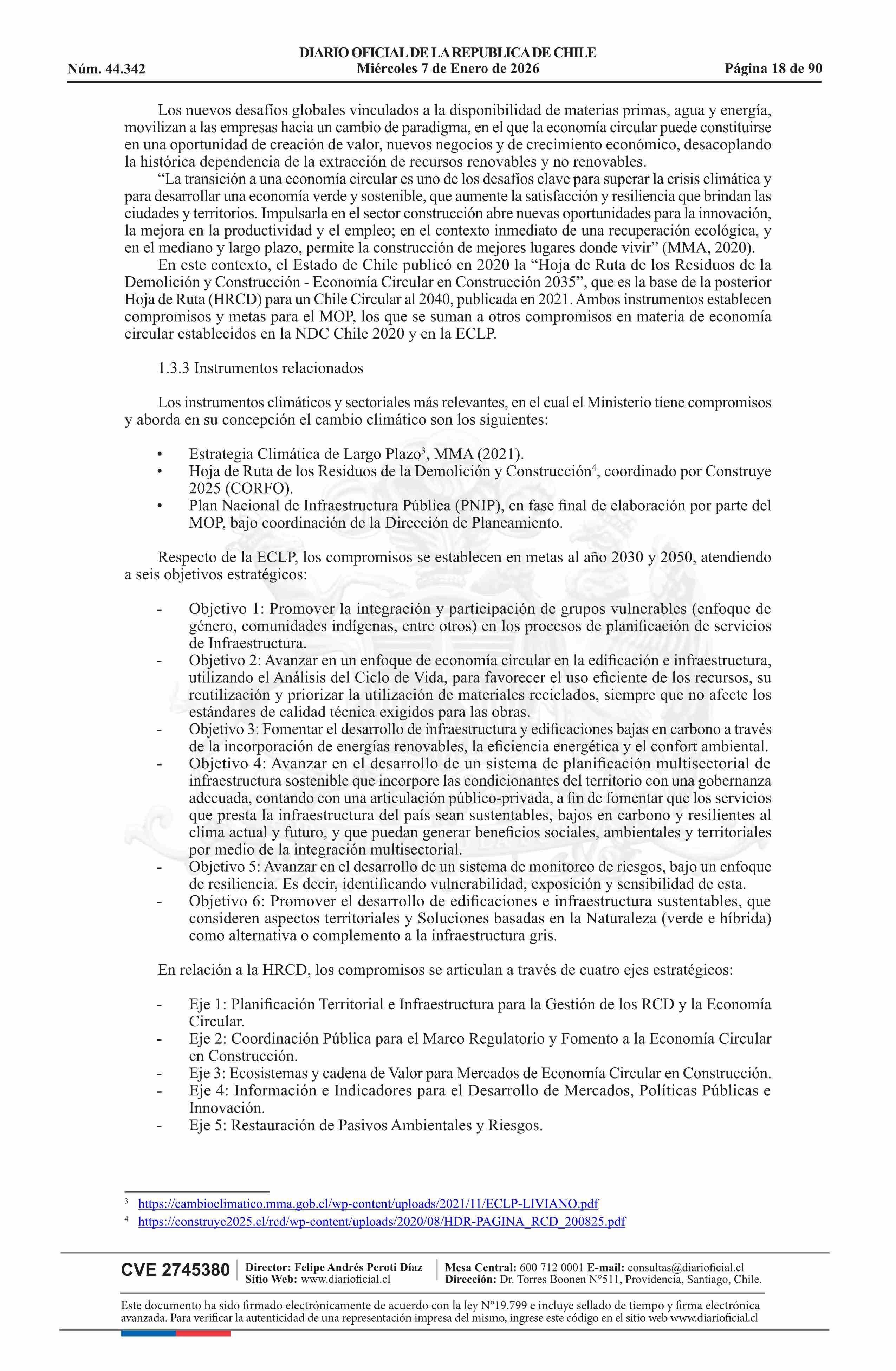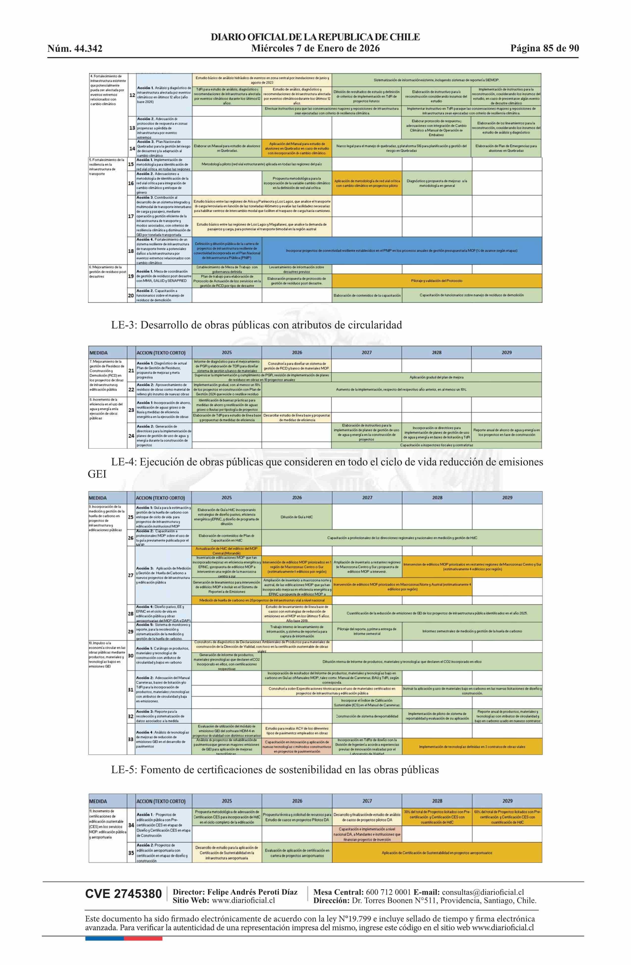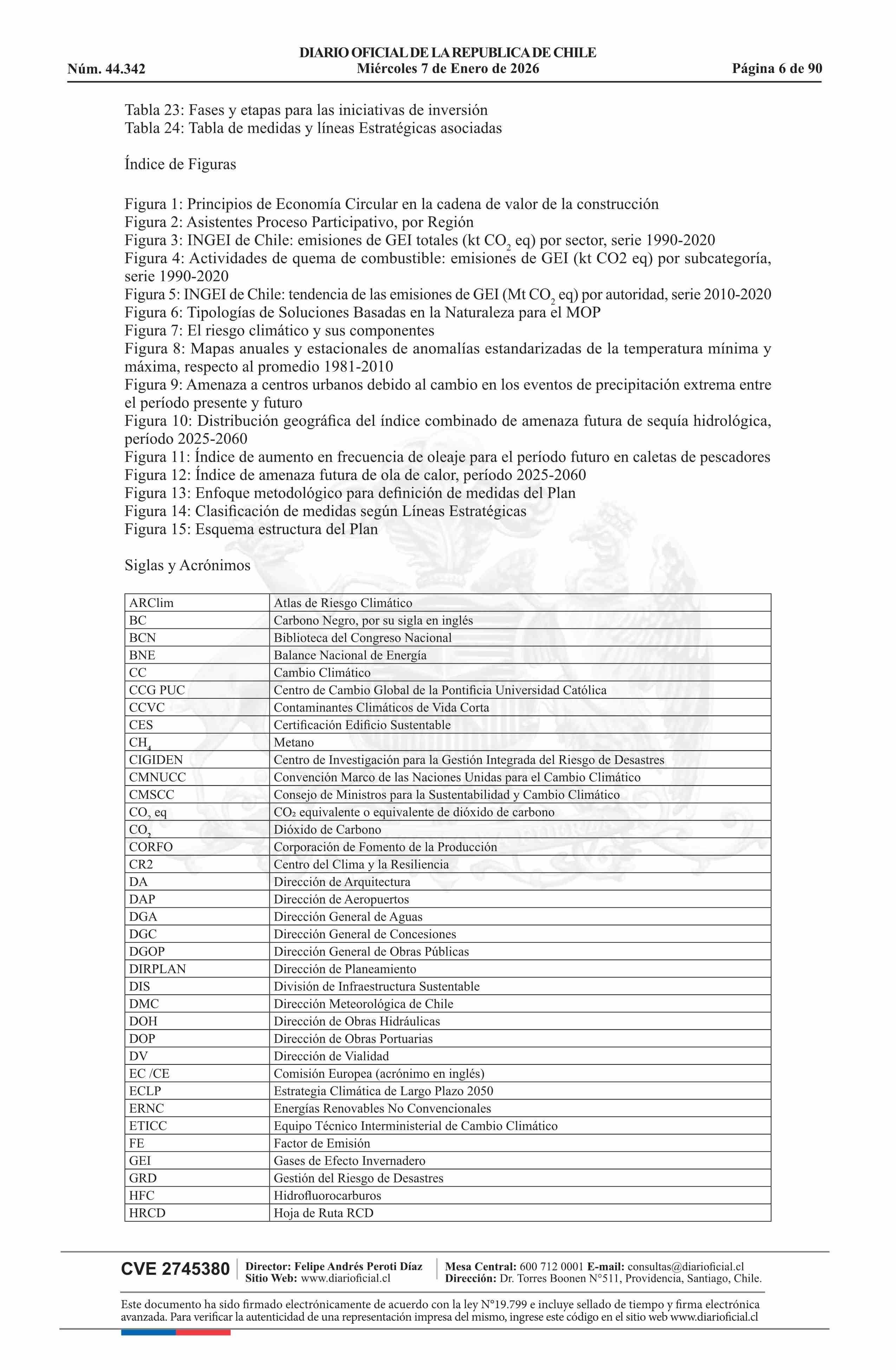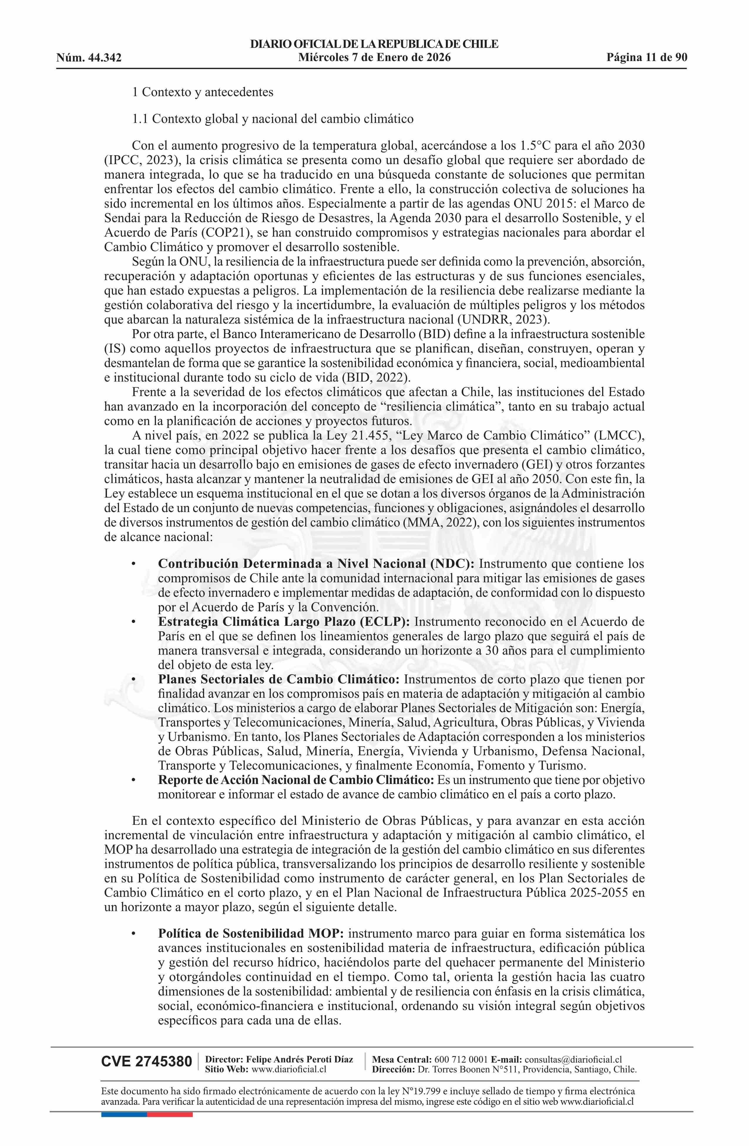 Decreto número 167, de 2024.- Aprueba actualización del Plan Sectorial de Adaptación y Mitigación al Cambio Climático - Sector Infraestructura 07-01-2026 Diario Oficial Edición Electrónica |