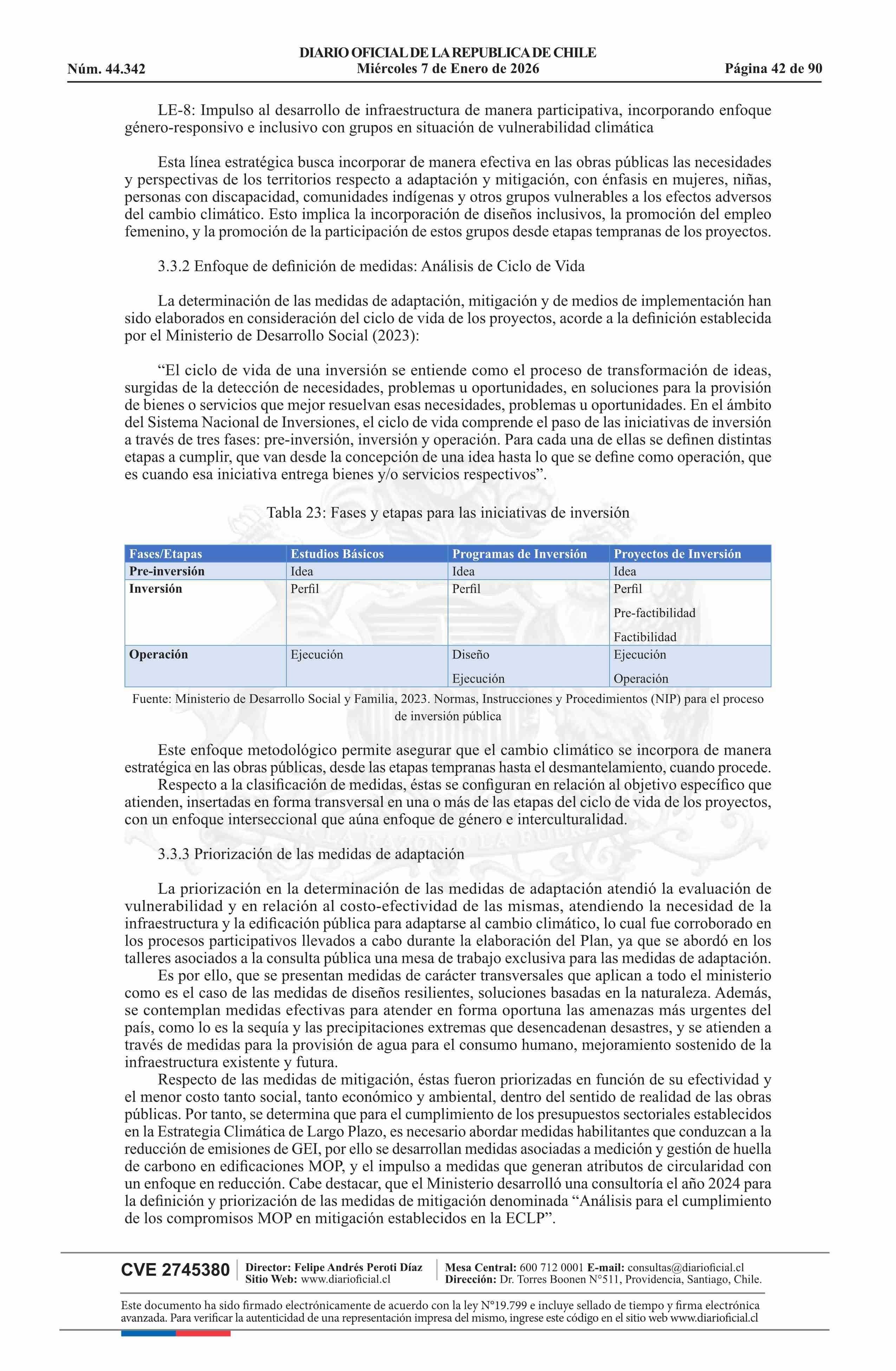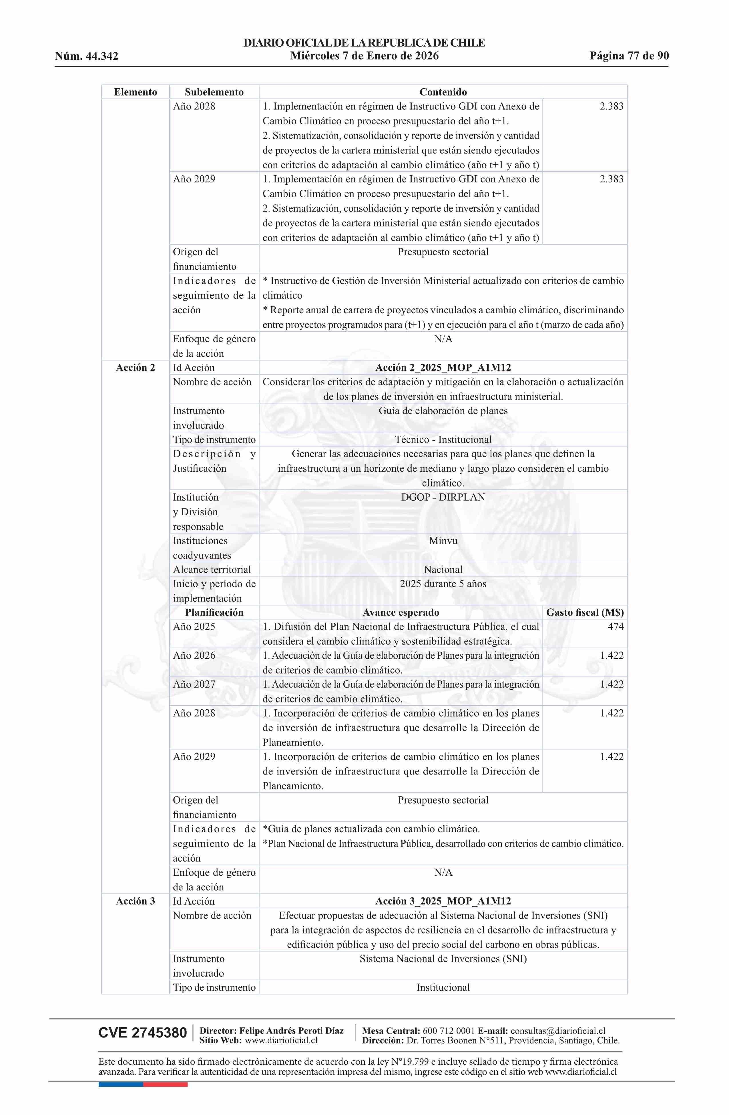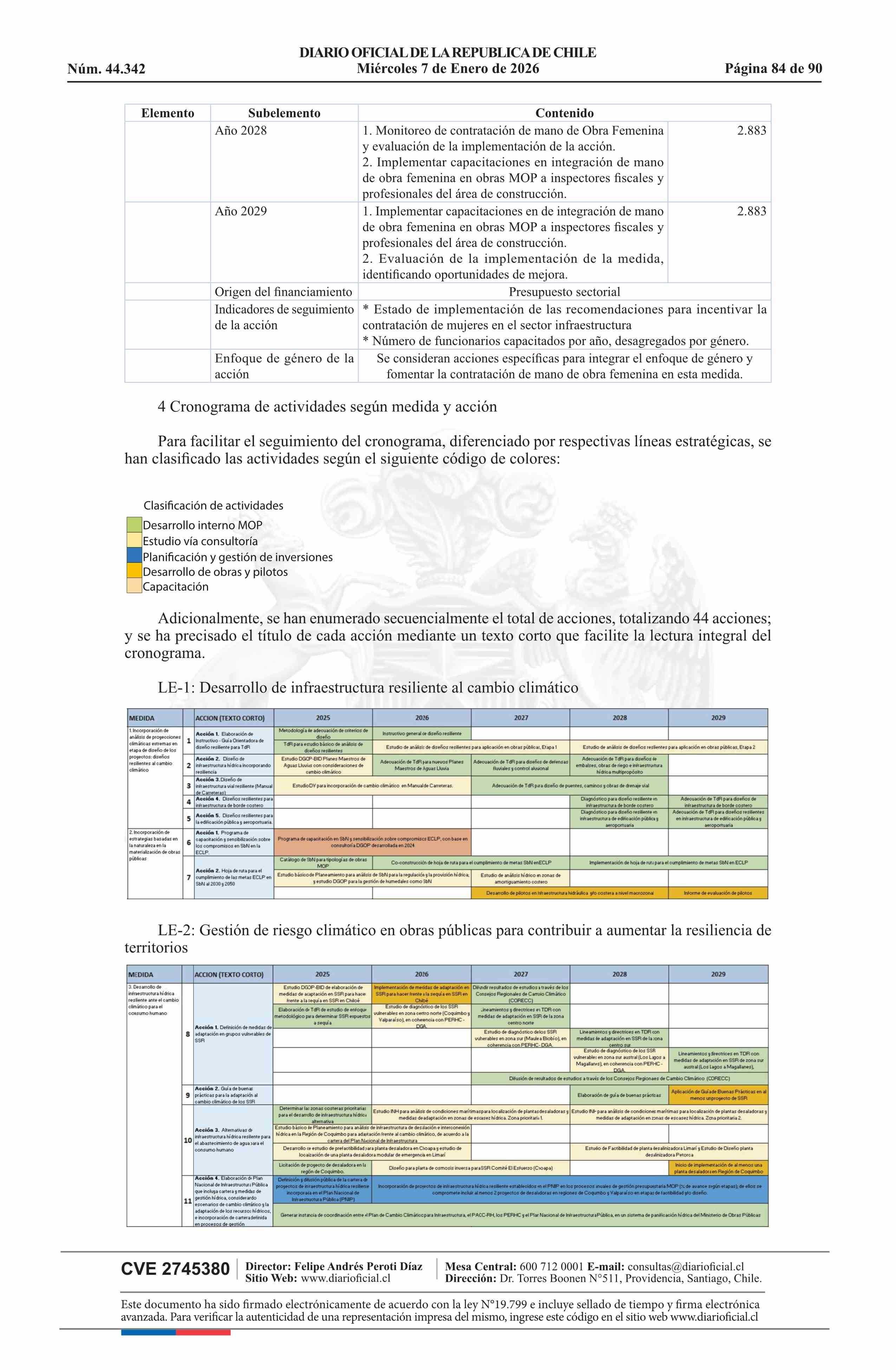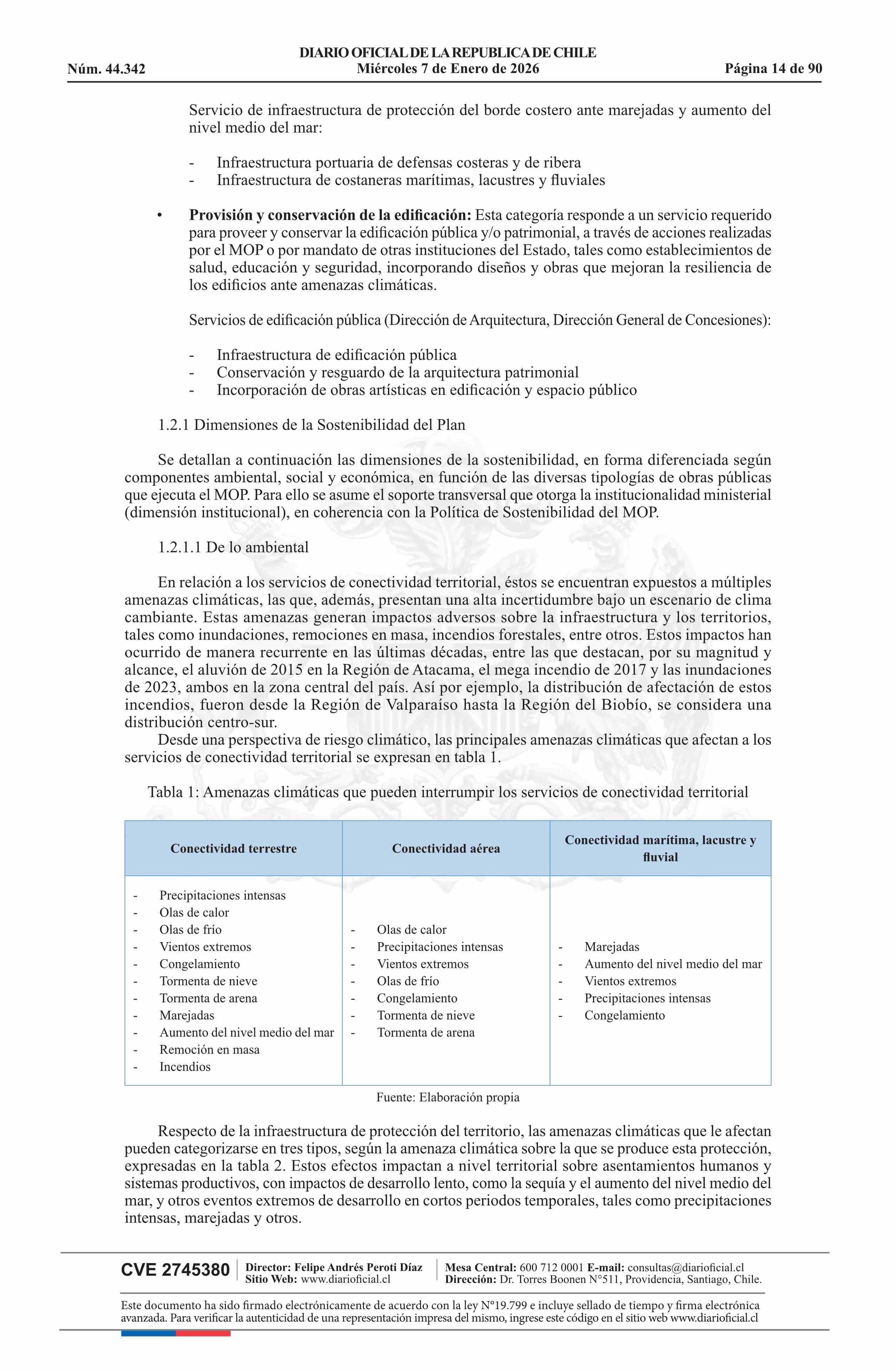 Decreto número 167, de 2024.- Aprueba actualización del Plan Sectorial de Adaptación y Mitigación al Cambio Climático - Sector Infraestructura 07-01-2026 Diario Oficial Edición Electrónica |