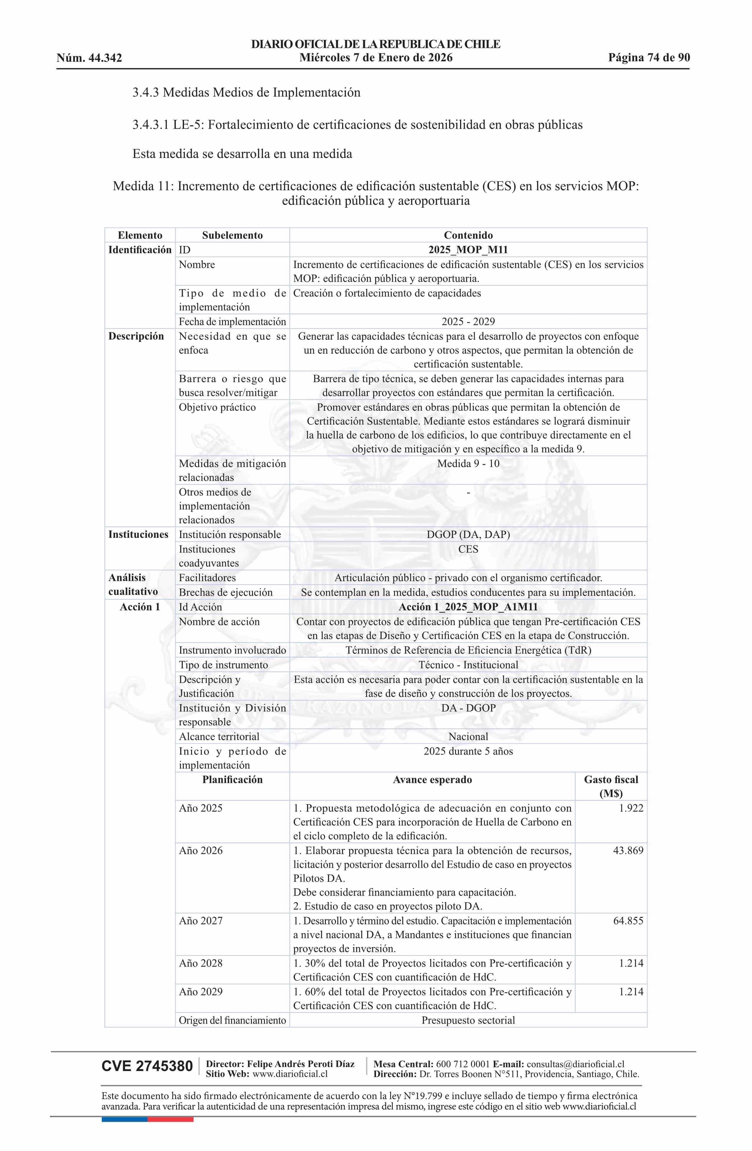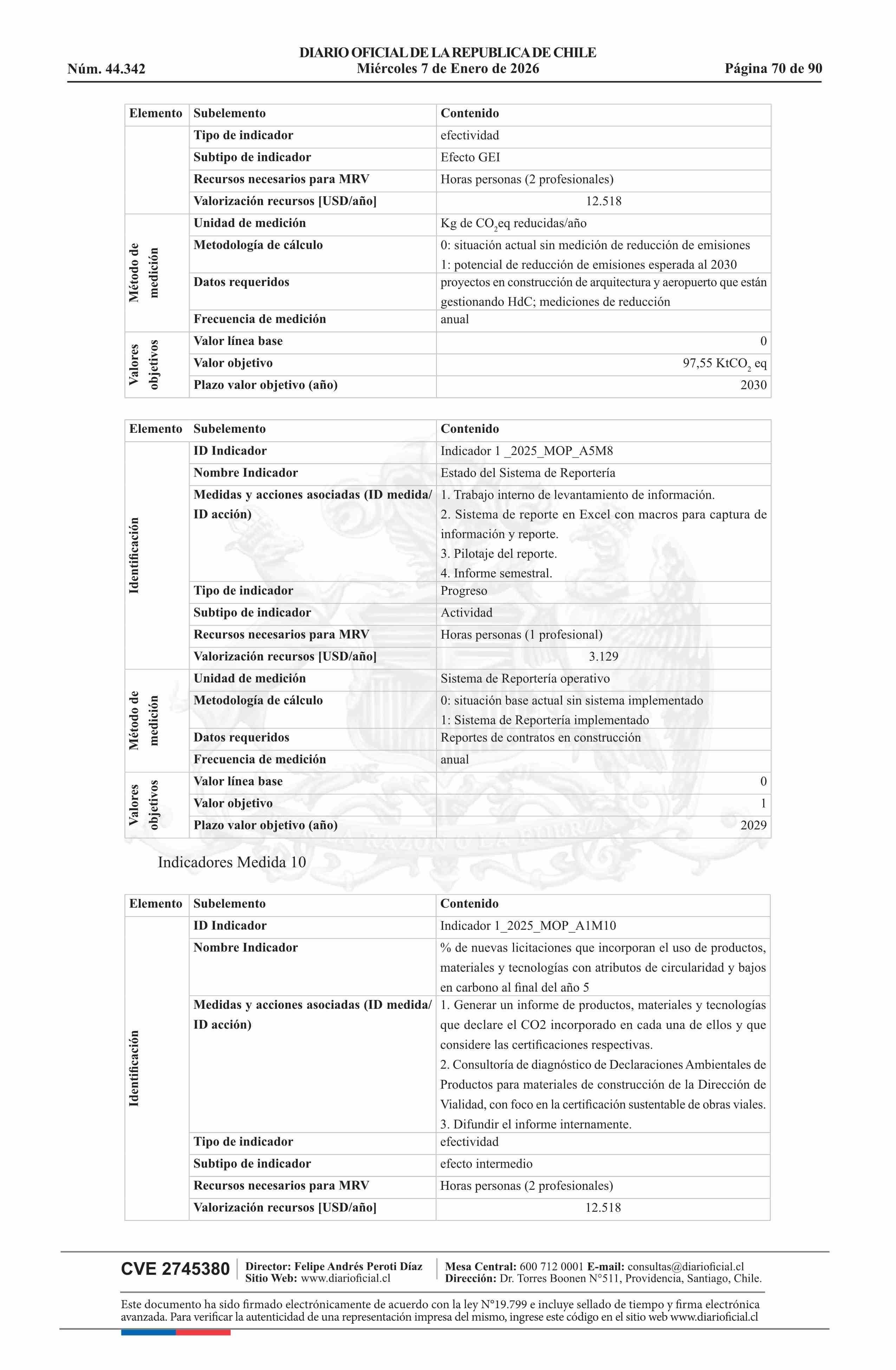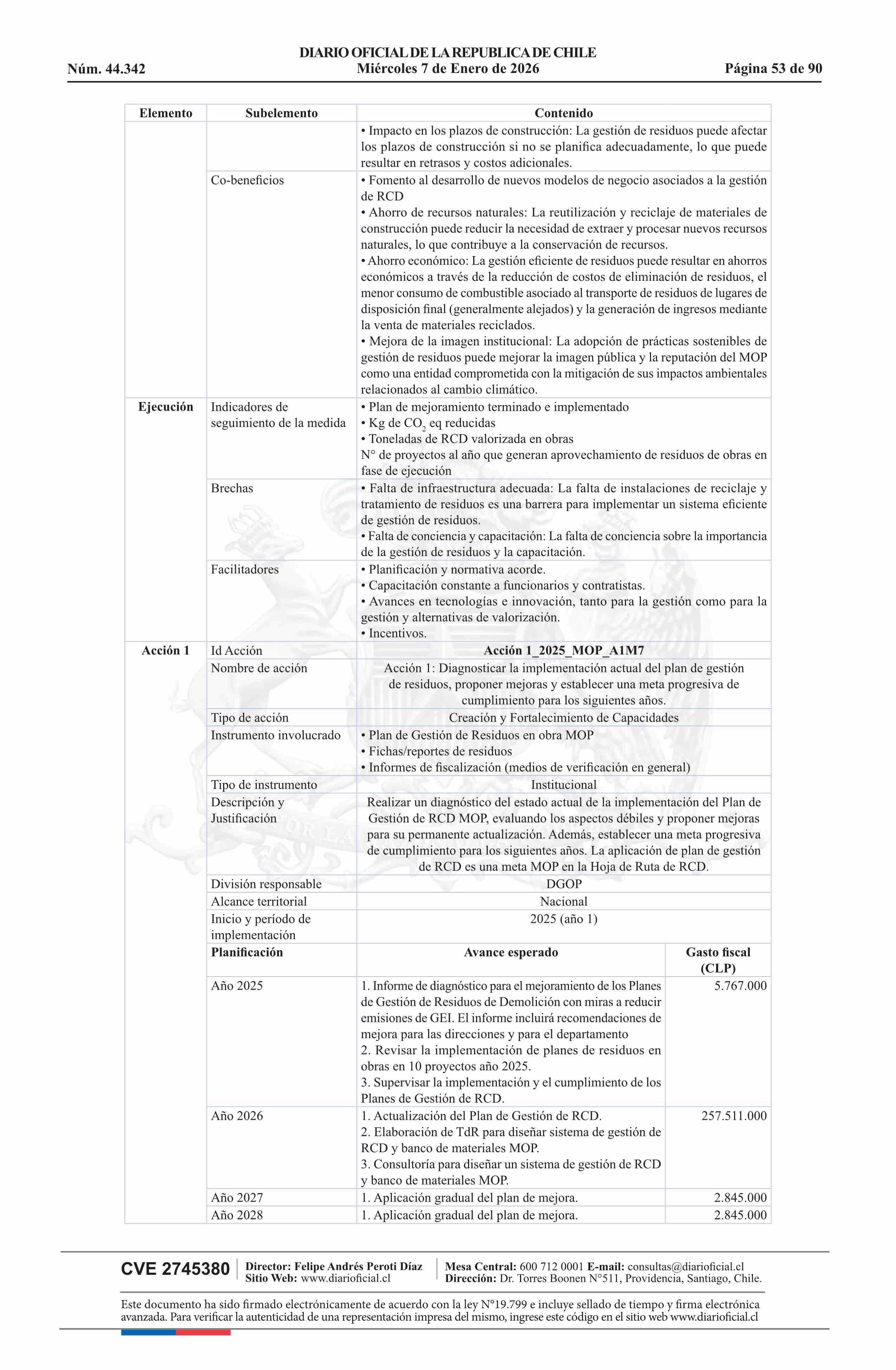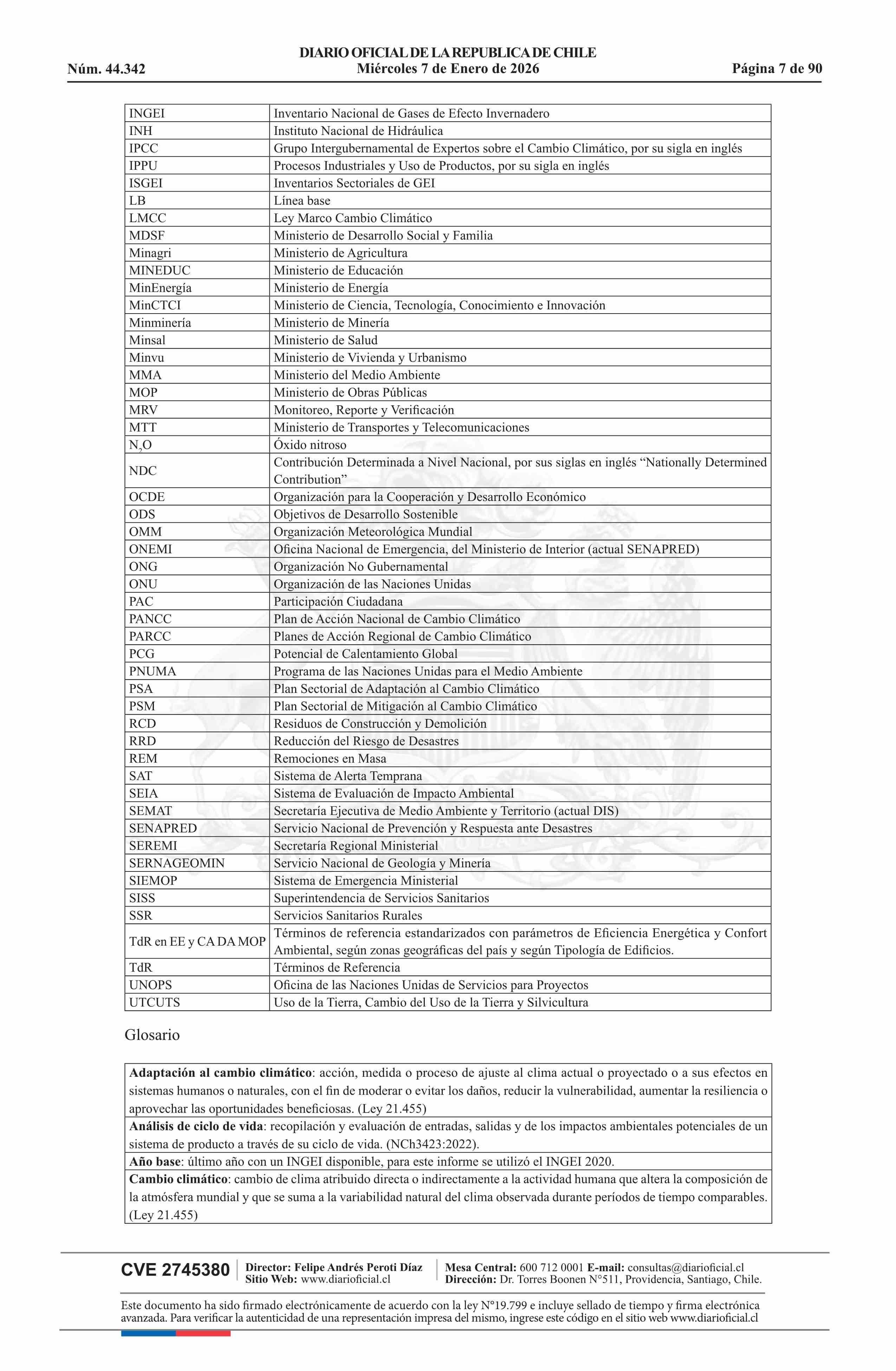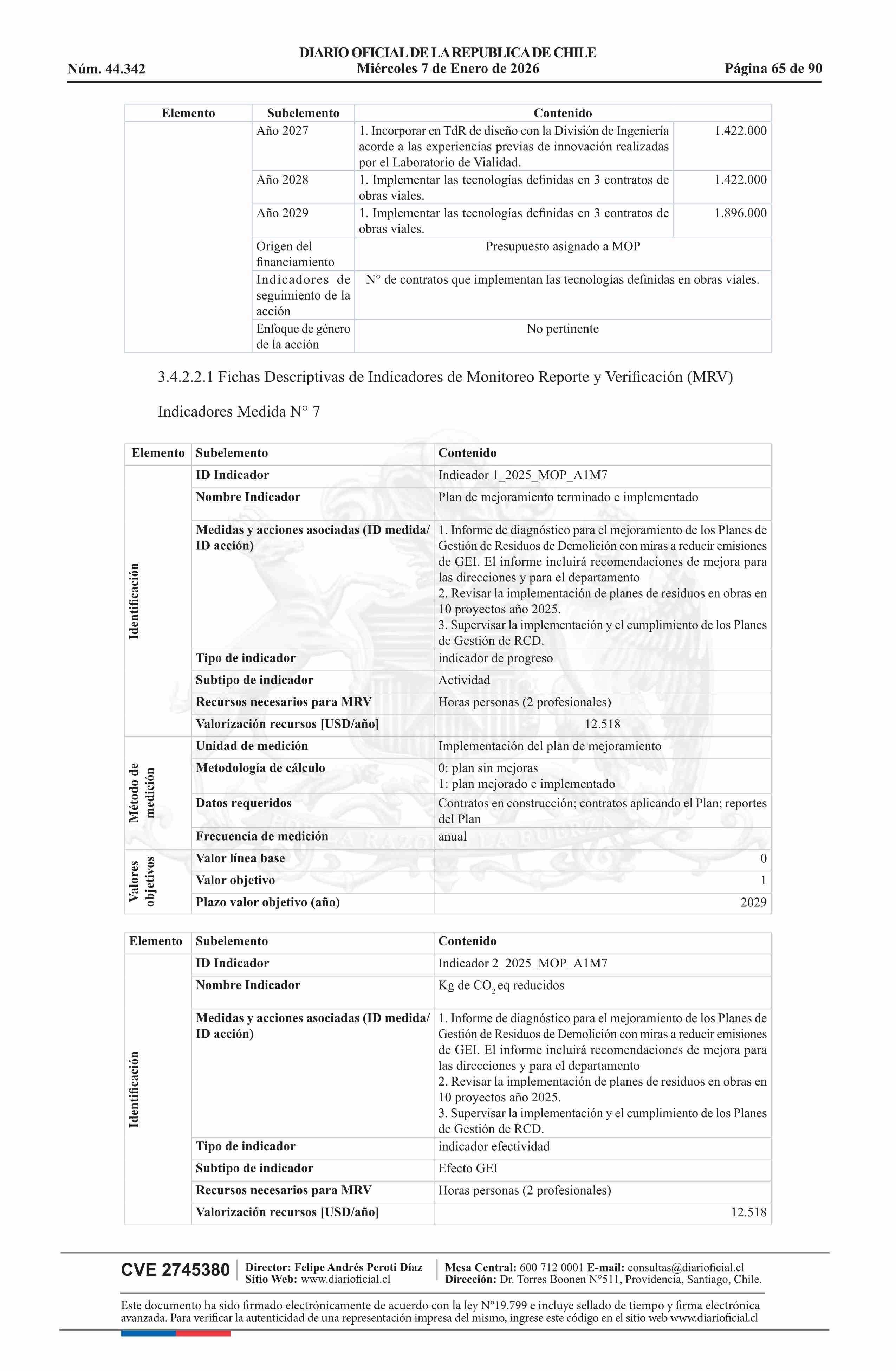 Decreto número 167, de 2024.- Aprueba actualización del Plan Sectorial de Adaptación y Mitigación al Cambio Climático - Sector Infraestructura 07-01-2026 Diario Oficial Edición Electrónica |