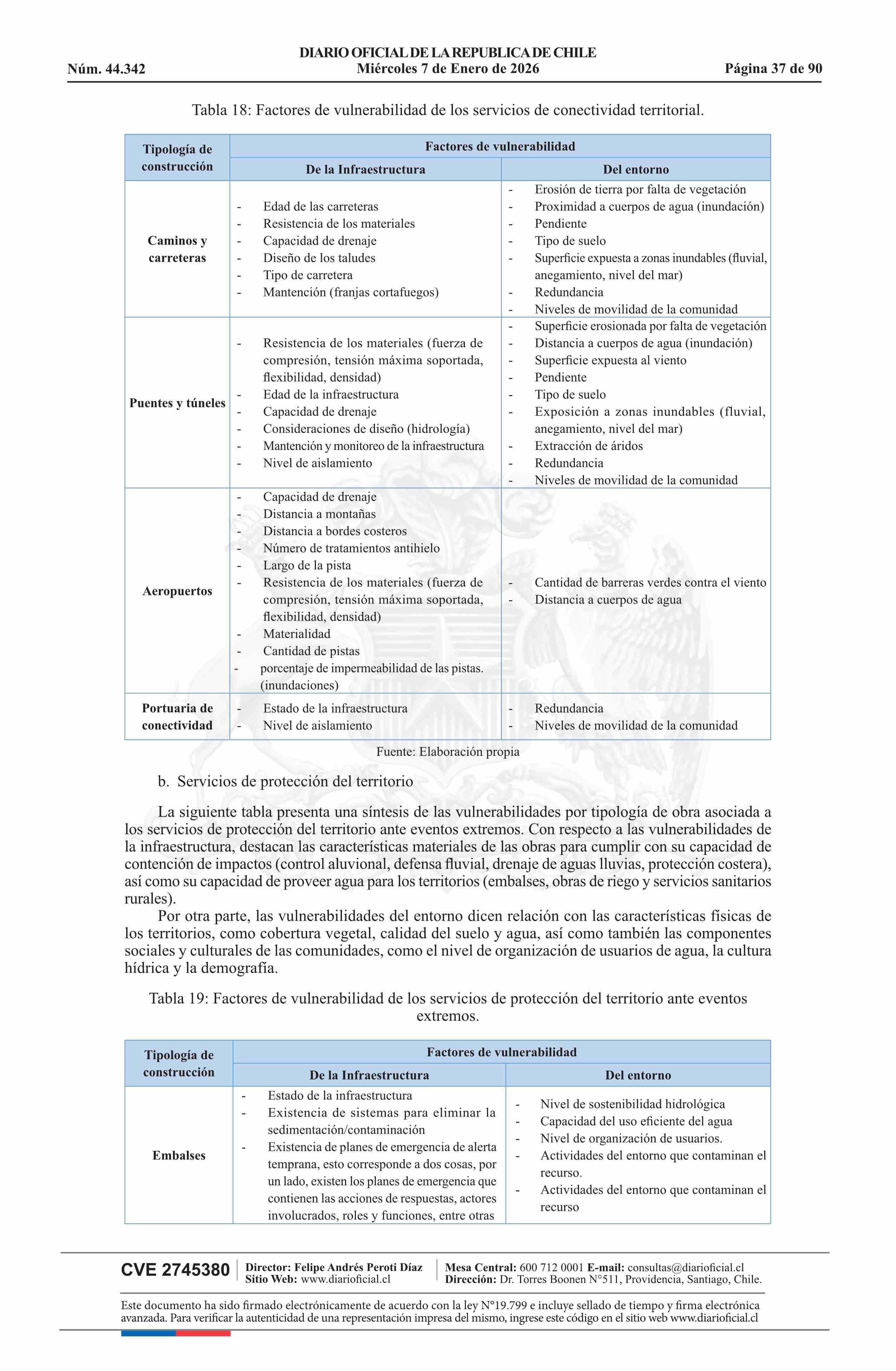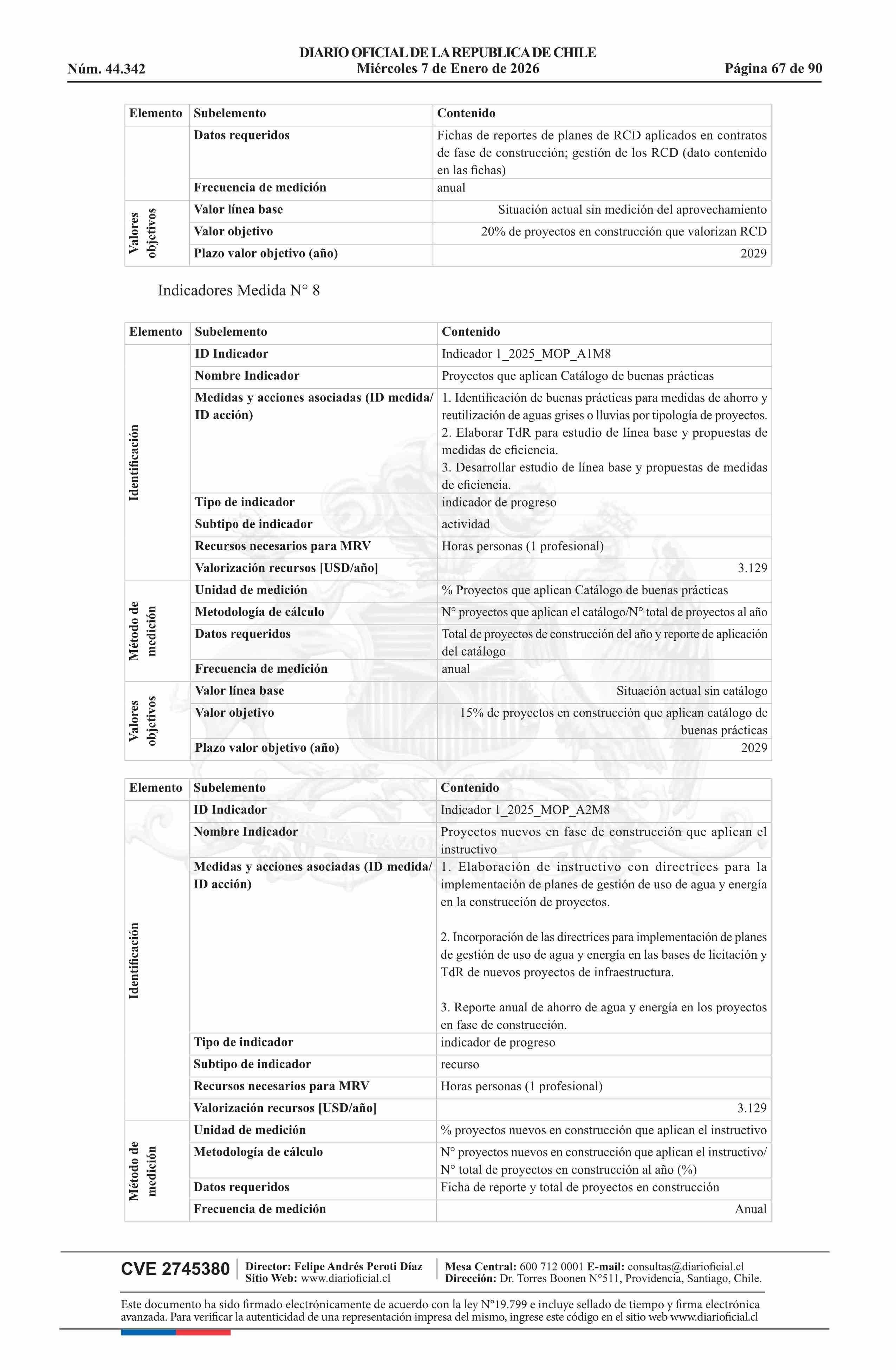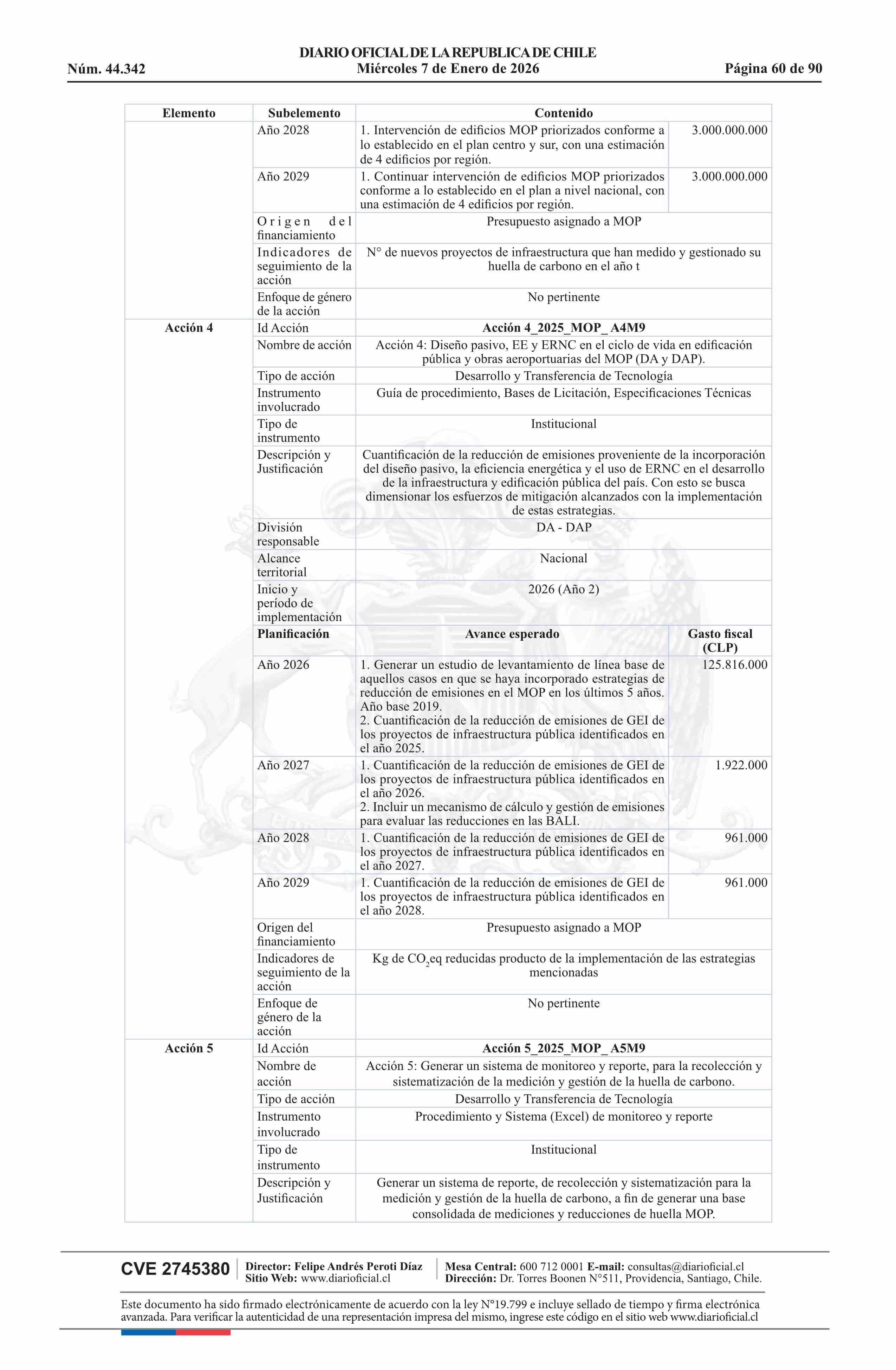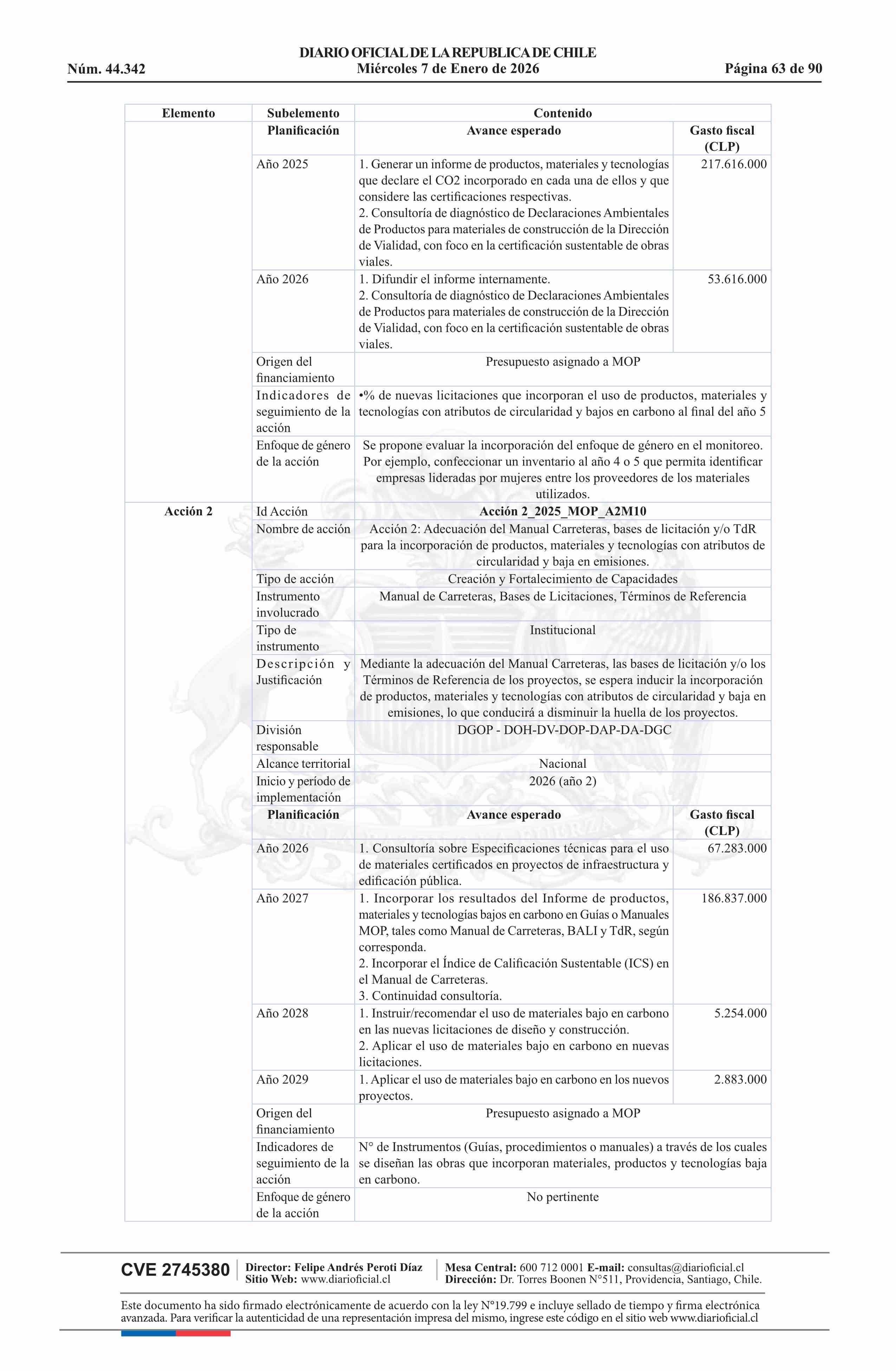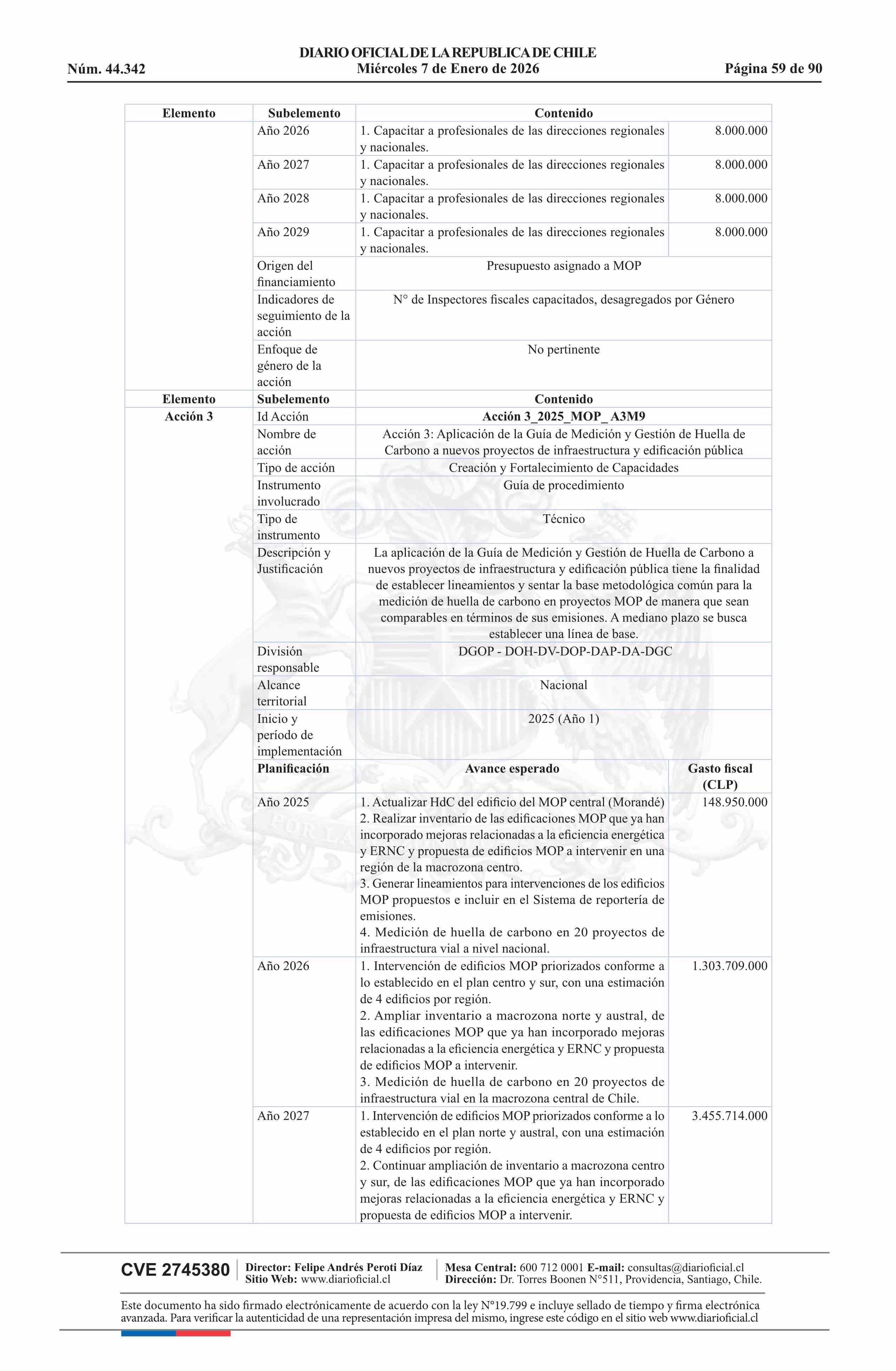 Decreto número 167, de 2024.- Aprueba actualización del Plan Sectorial de Adaptación y Mitigación al Cambio Climático - Sector Infraestructura 07-01-2026 Diario Oficial Edición Electrónica |
