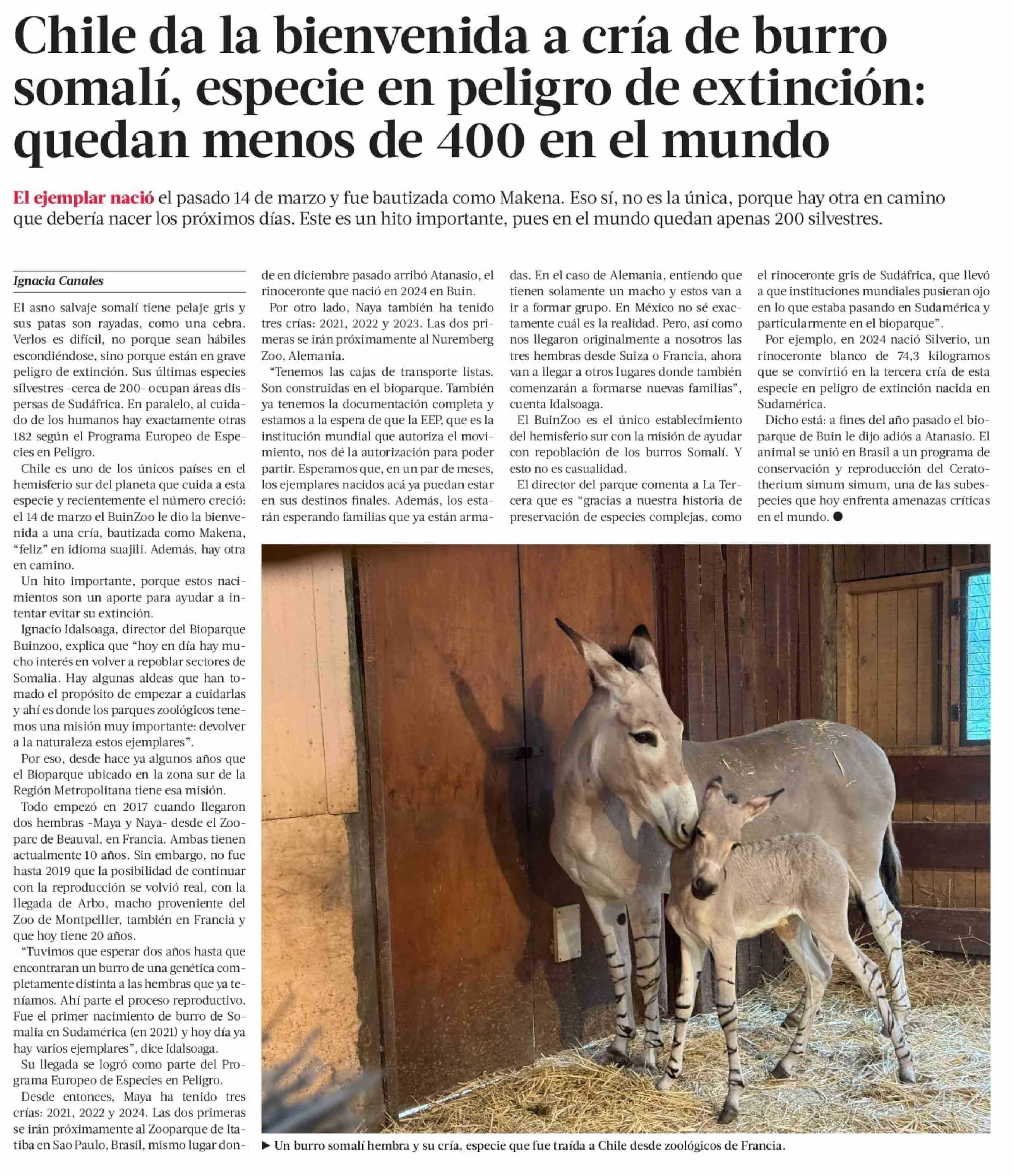 Título: Chile da la bienvenida a cría de burro somalí, especie en peligro de extinción: quedan menos de 400 en el mundo