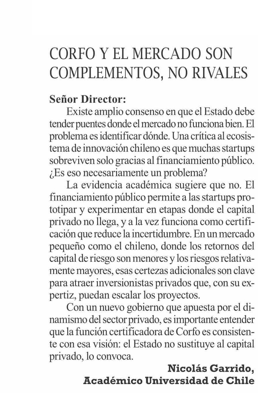 | Título: | CORFO Y EL MERCADO SON COMPLEMENTOS, NO RIVALES |