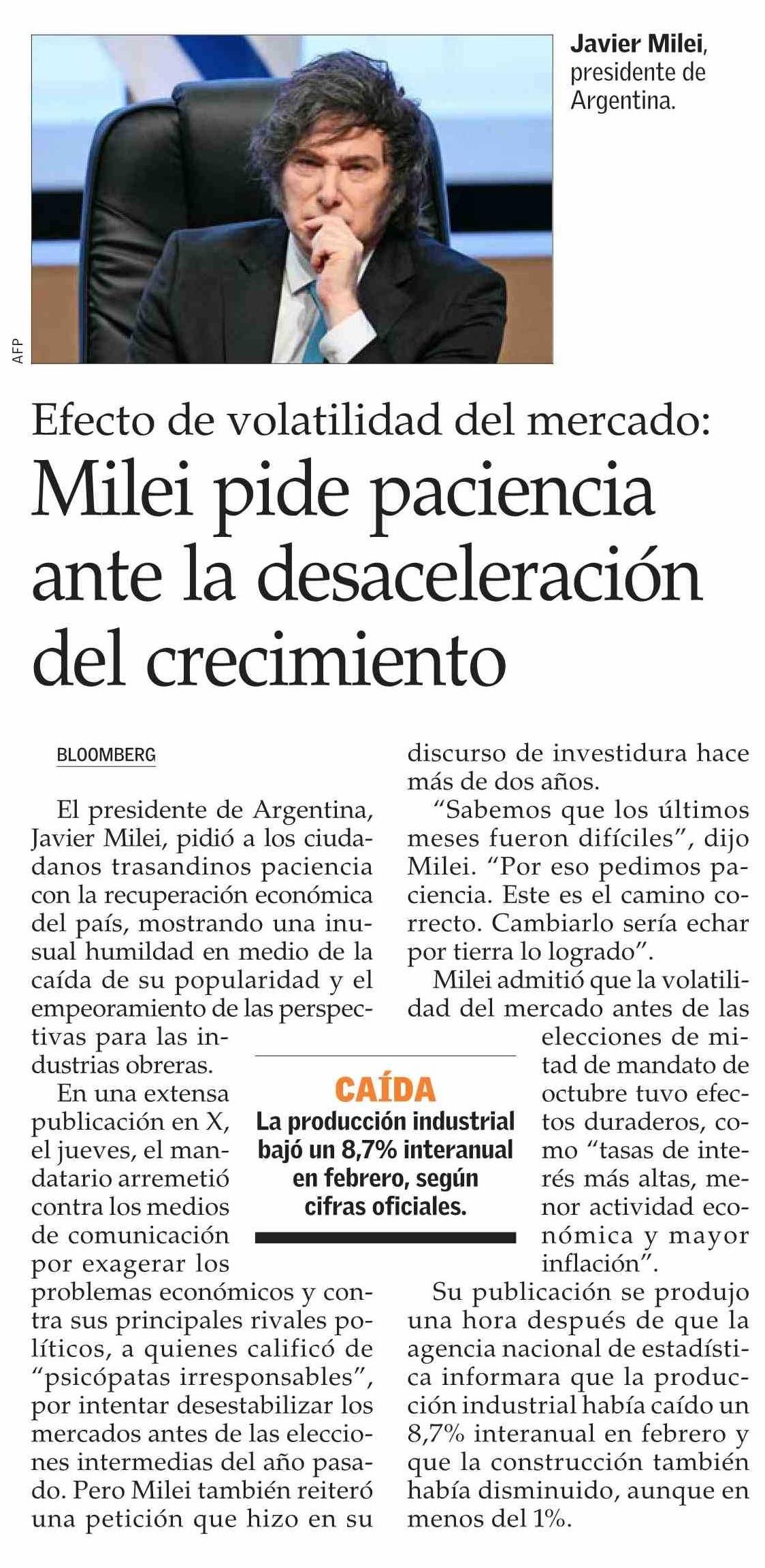 Título: Milei pide paciencia ante la desaceleración del crecimiento