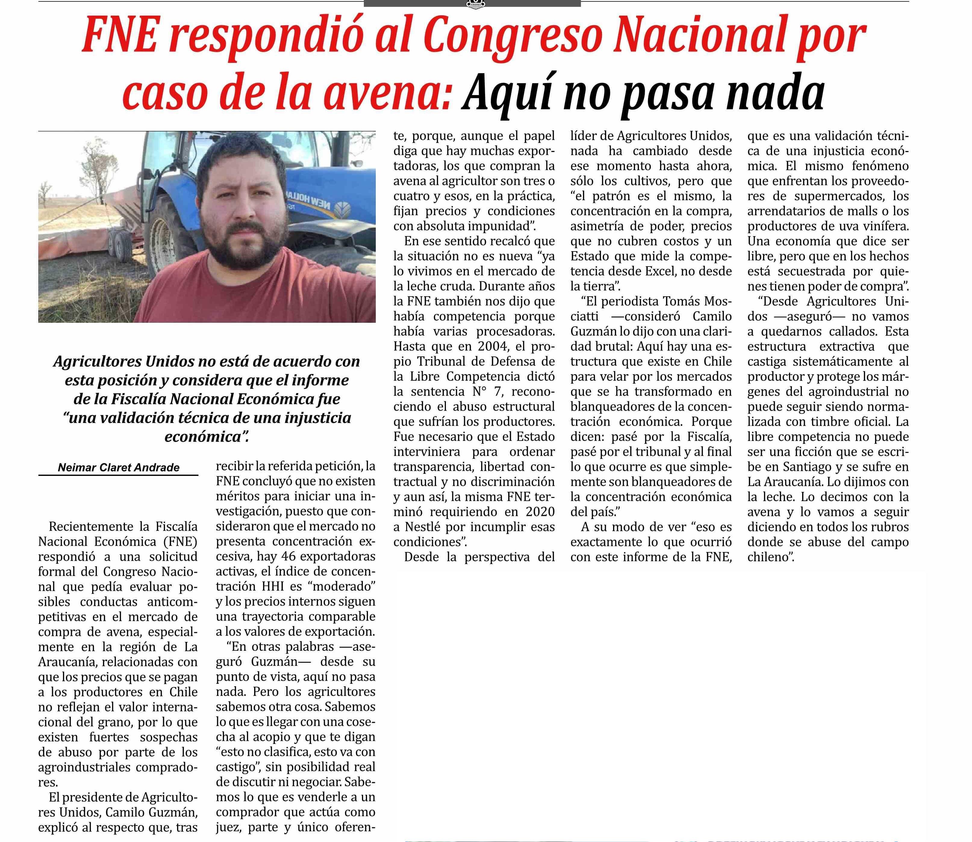 | Título: | FNE respondió al Congreso Nacional por caso de la avena: Aquí no pasa nada |