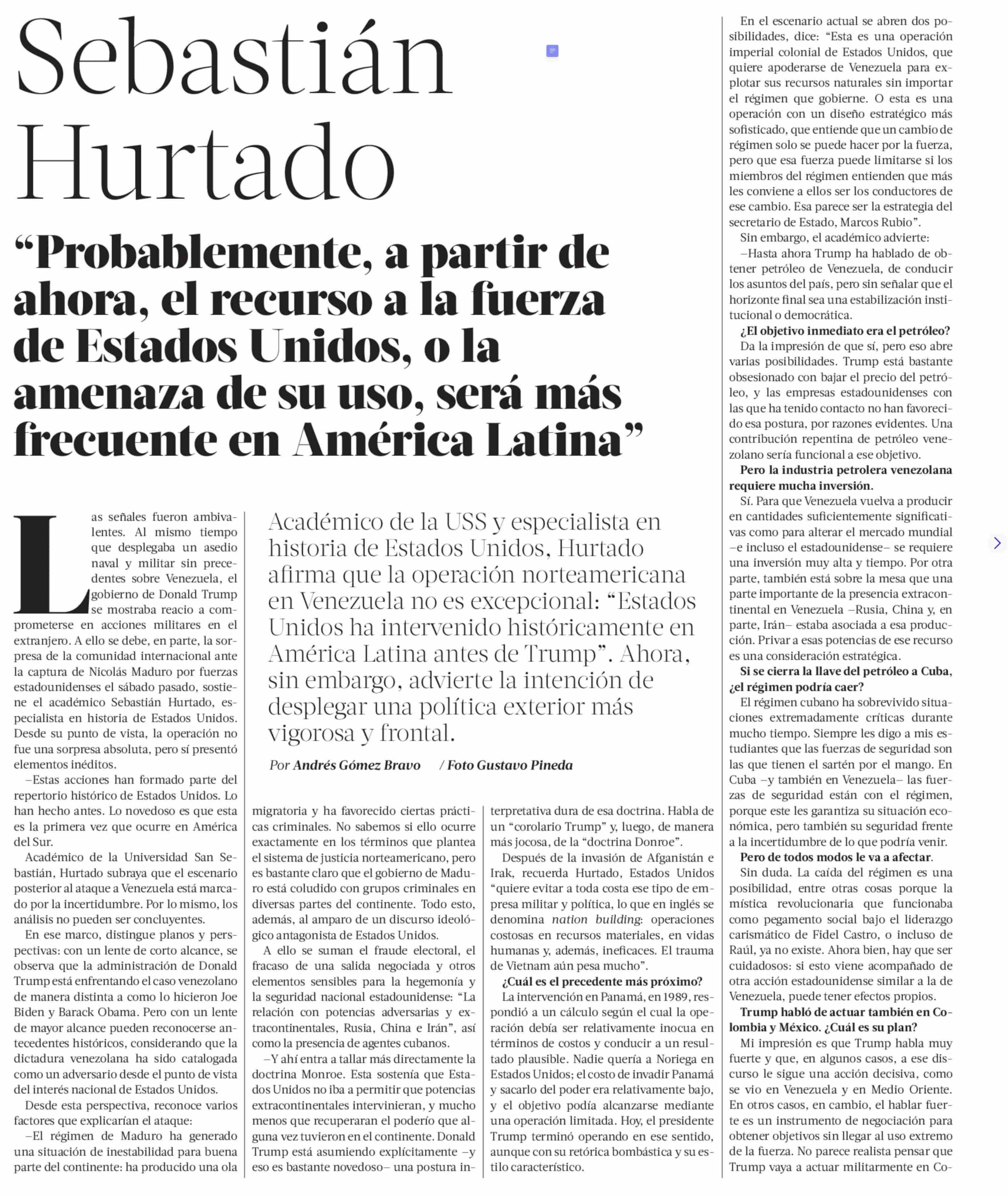 Sebastián Hurtado 11-01-2026 La Tercera |