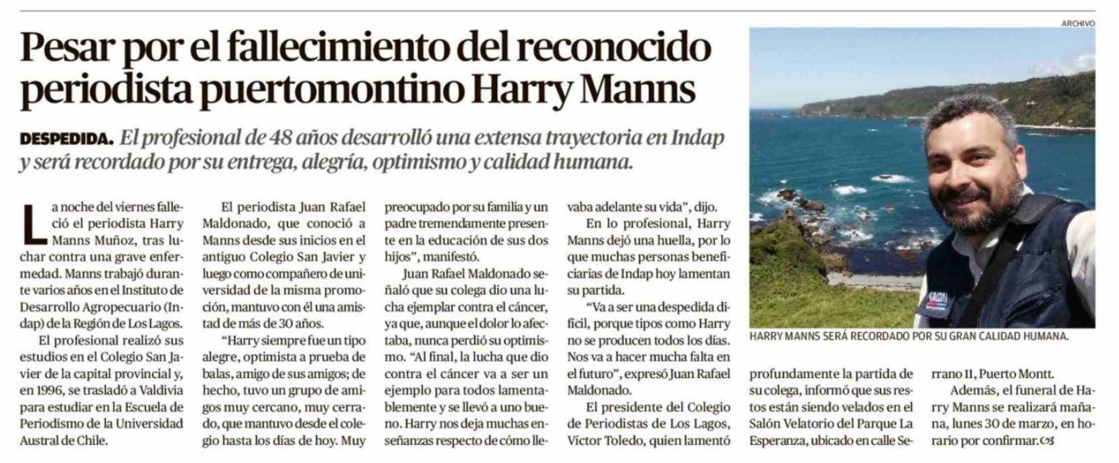 Título: Pesar por el fallecimiento del reconocido periodista puertomontino Harry Manns