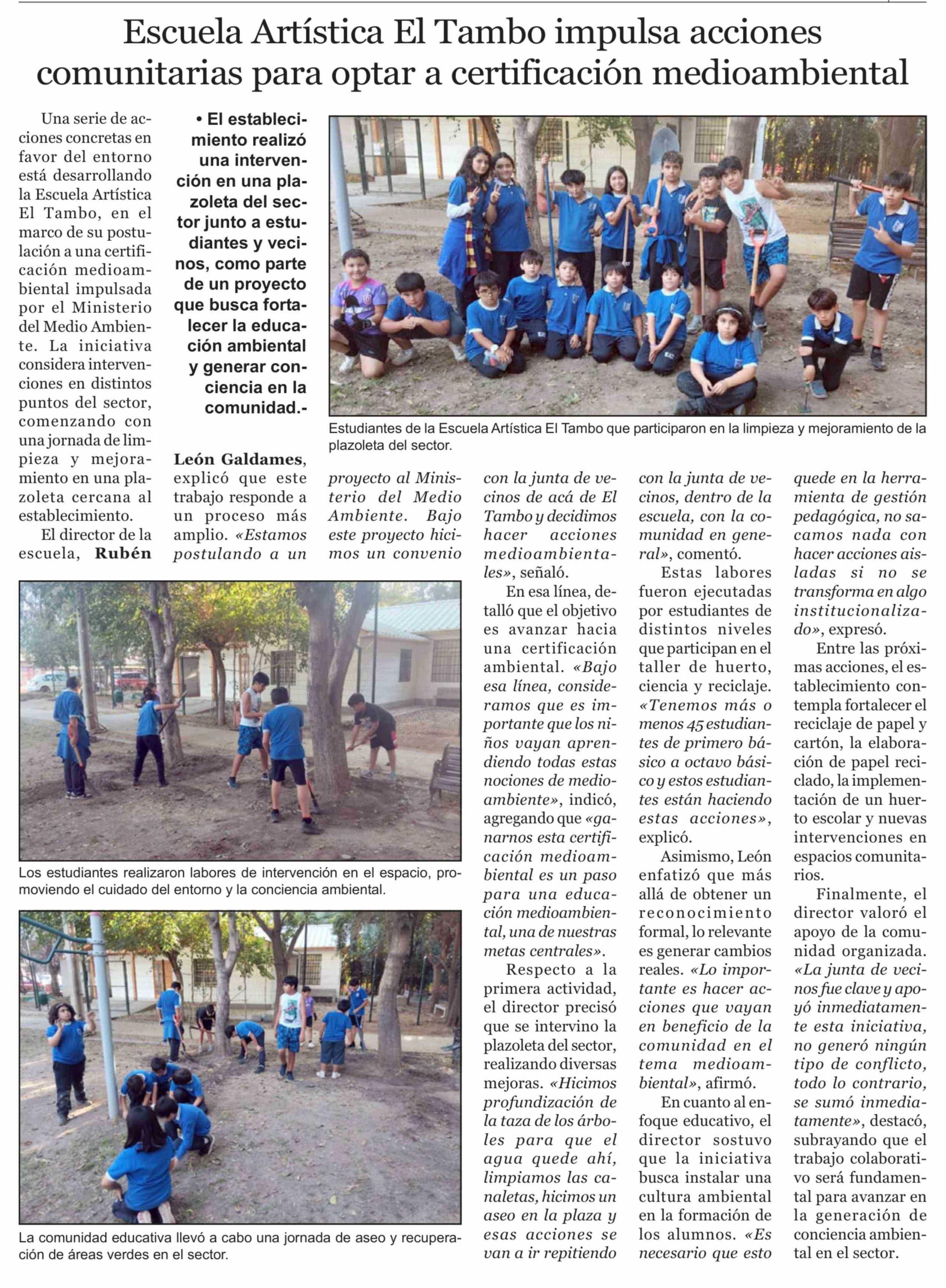 Título: Escuela Artística El Tambo impulsa acciones comunitarias para optar a certificación medioambiental