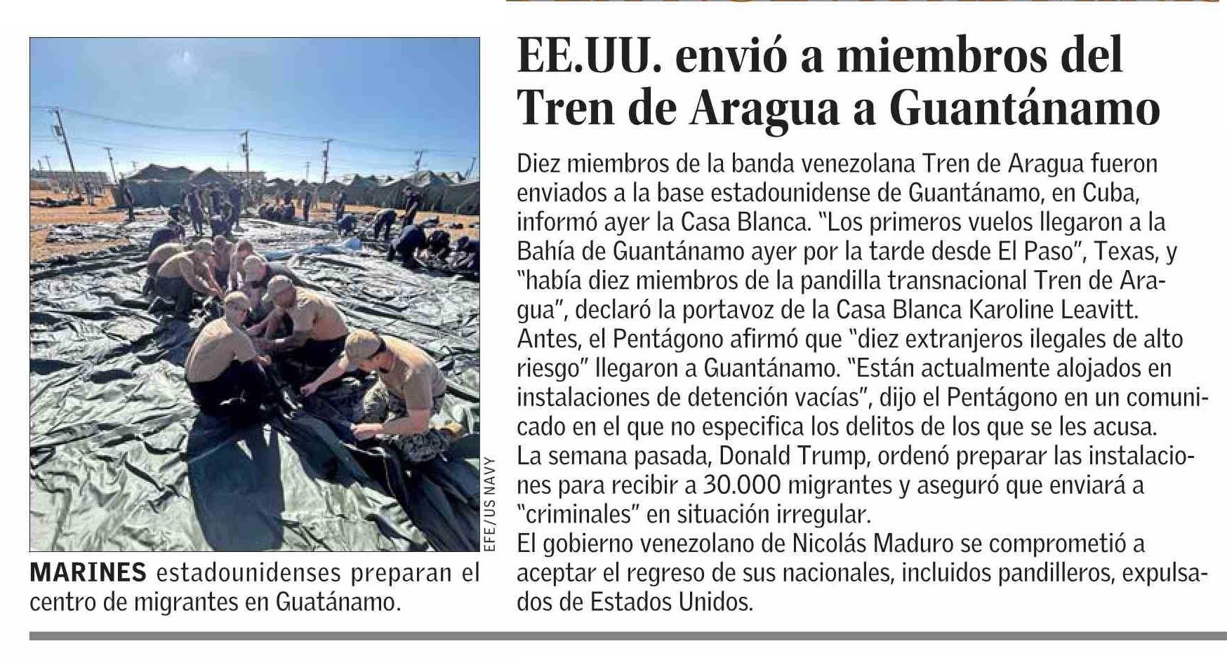 | Título: | EE.UU. envió a miembros del Tren de Aragua a Guantánamo |