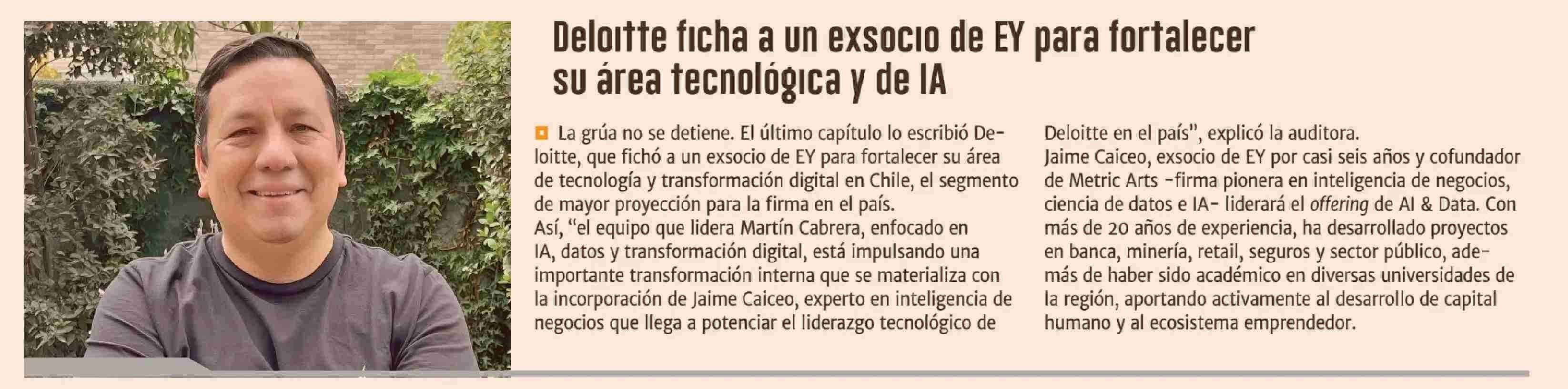 Deloitte ficha a un exsocio de EY para fortalecer su área tecnológica y de lA 03-06-2025 Diario Financiero |