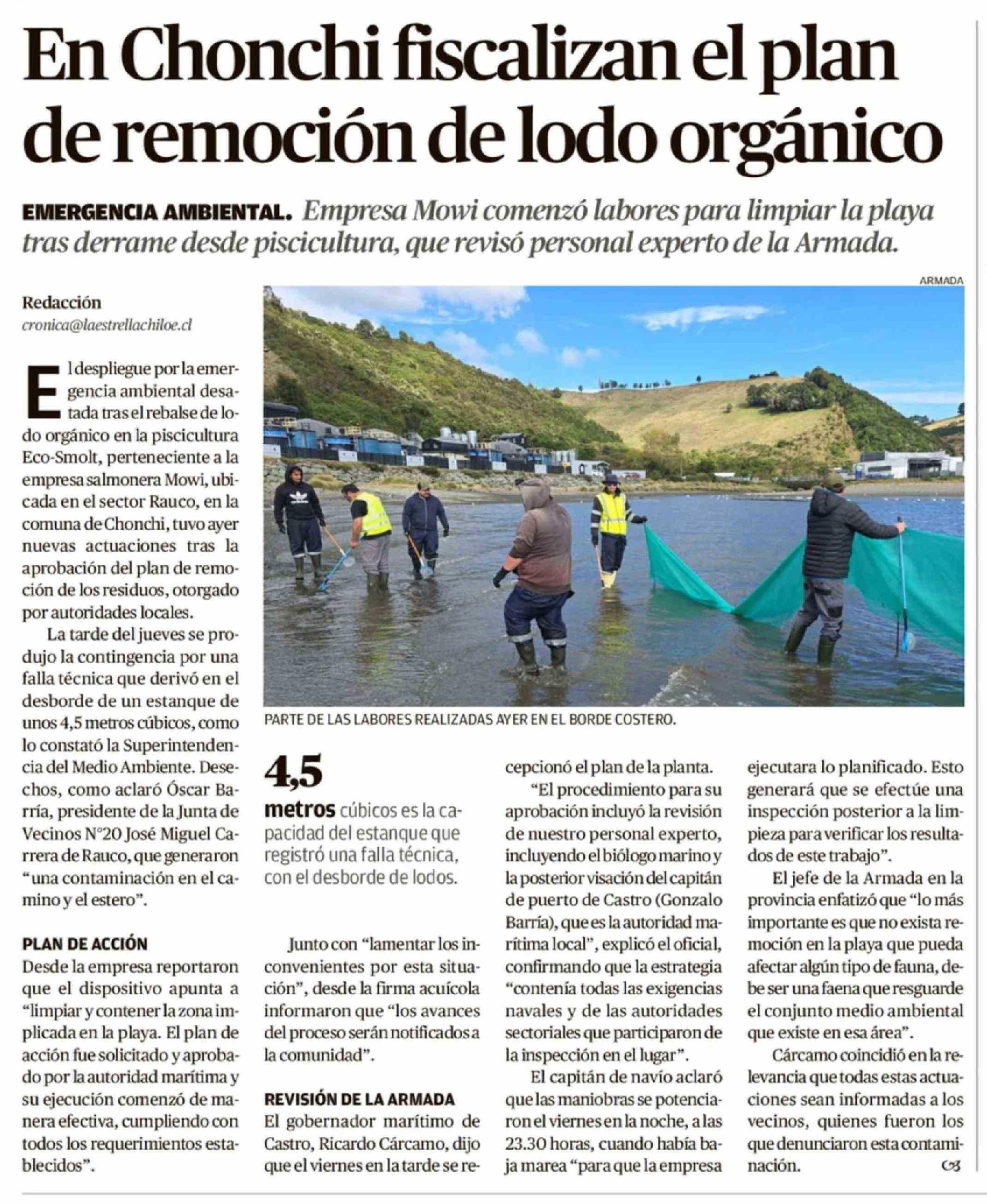 En Chonchi fiscalizan el plan de remoción de lodo orgánico 12-04-2026 El Llanquihue |