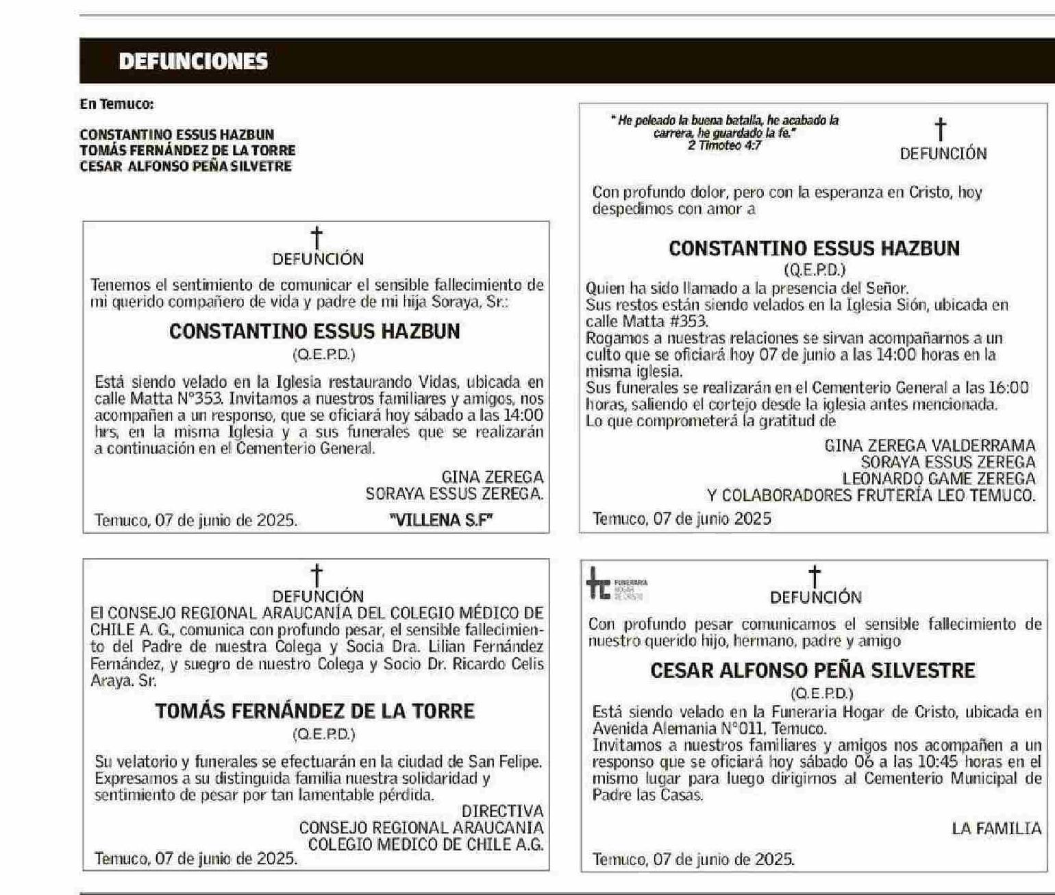 DEFUNCIONES 07-06-2025 El Austral de la Araucanía |