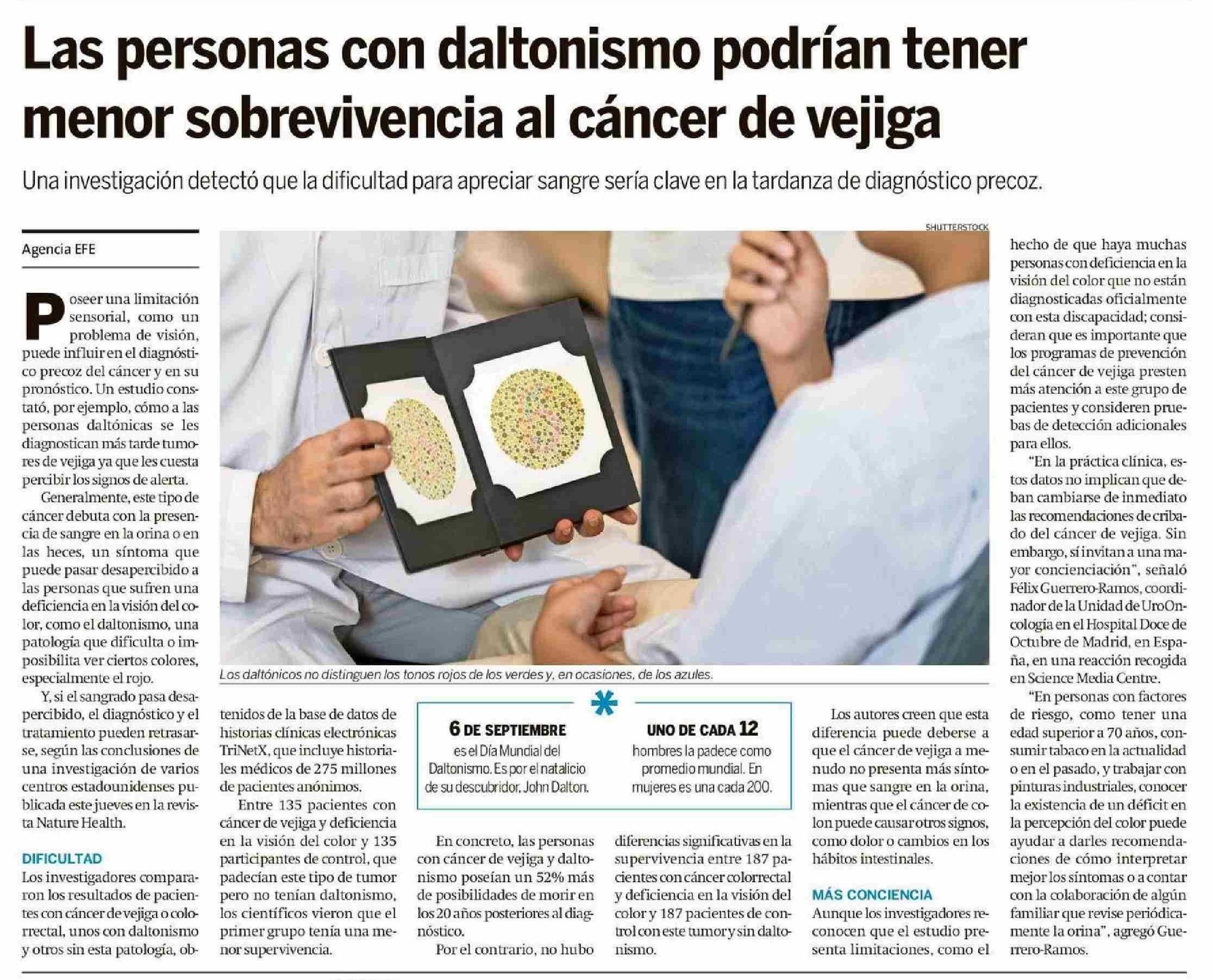 | Título: | Las personas con daltonismo podrían tener menor sobrevivencia al cáncer de vejiga |