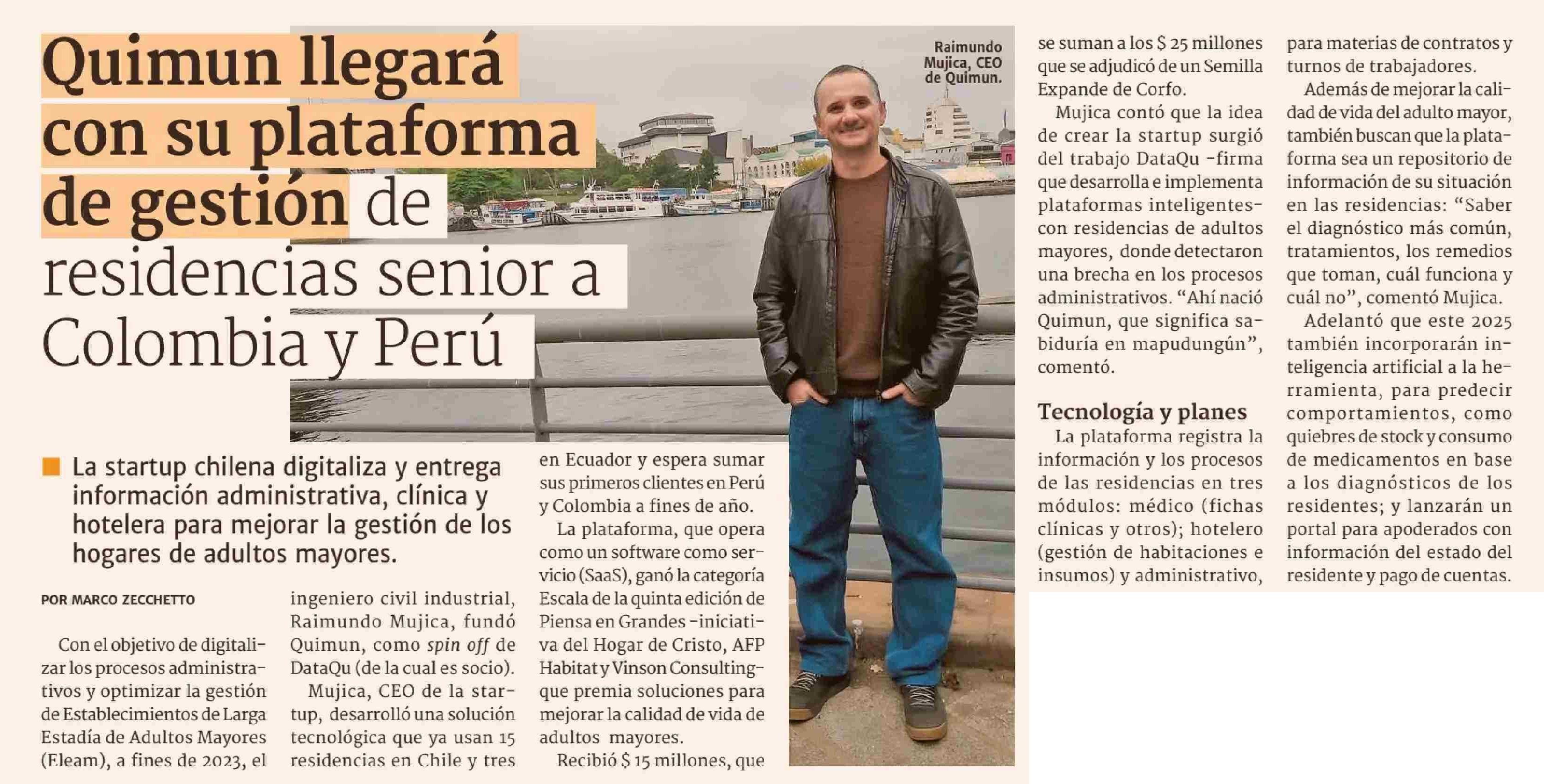 Quimun llegará con su plataforma de gestión de residencias senior a Colombia y Perú 14-04-2025 Diario Financiero |