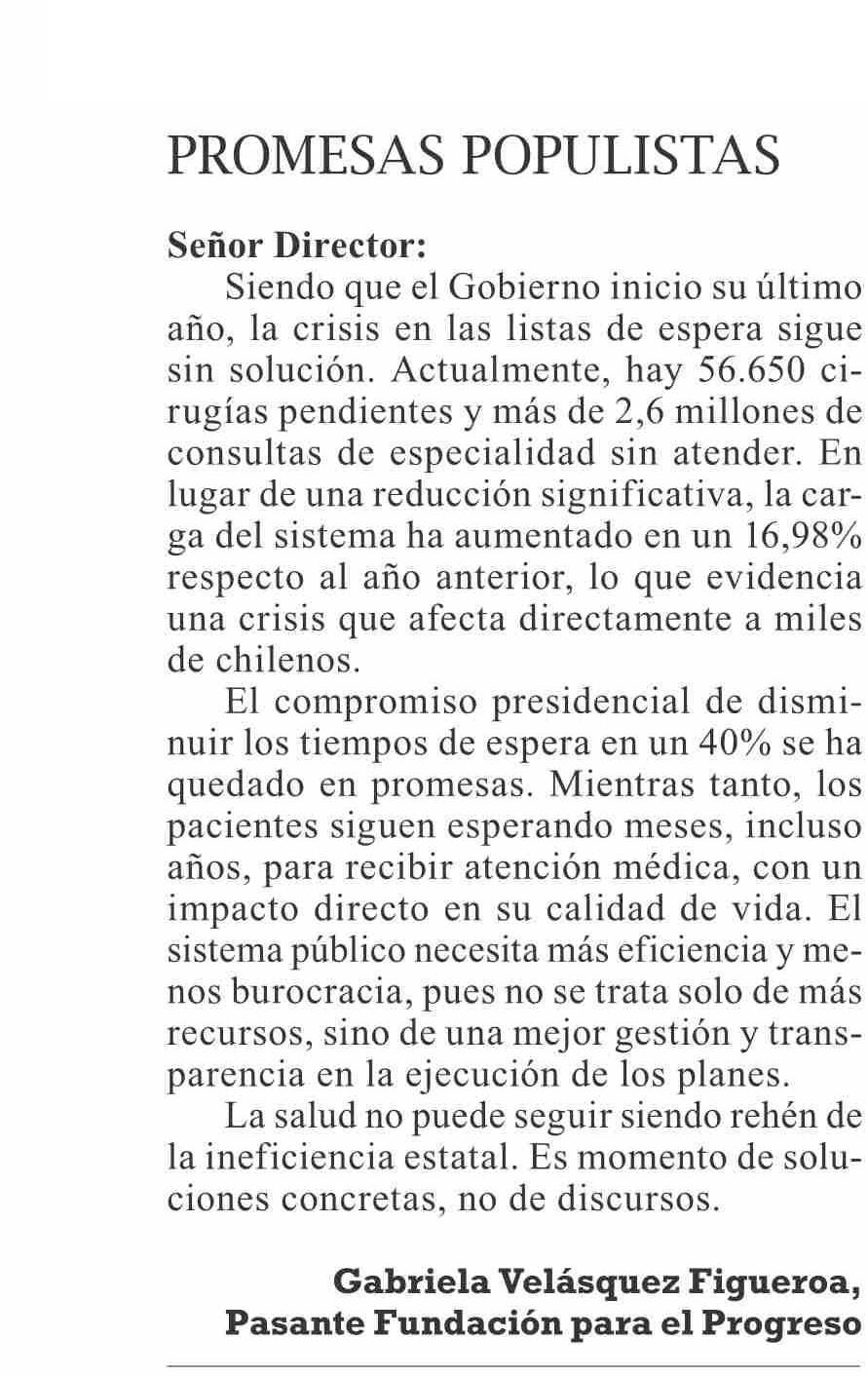 | Título: | CARTAS: PROMESAS POPULISTAS |