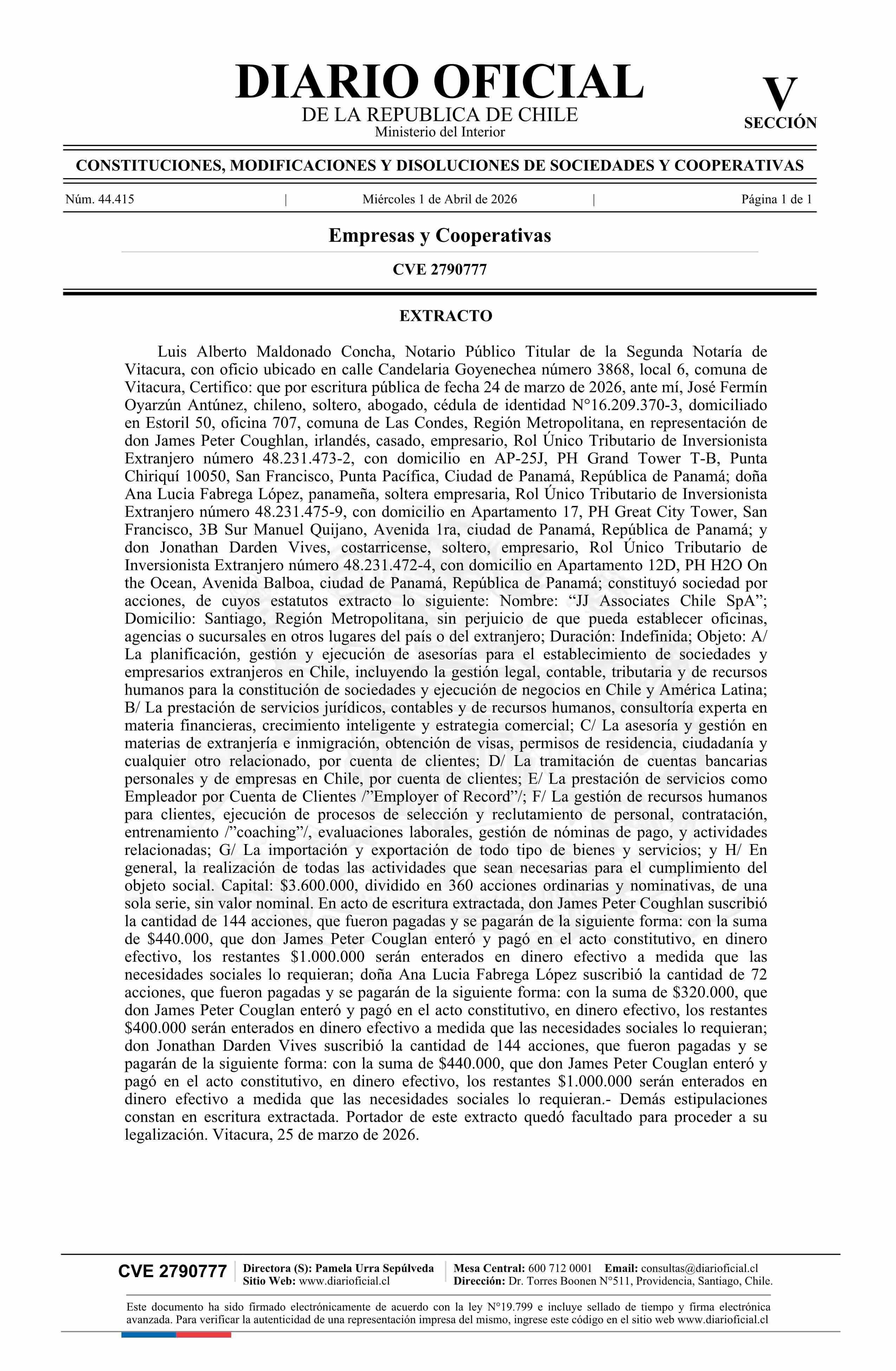 Fuente: Diario Oficial Edición Electrónica (Diario Oficial de Chile - 5 Empresas Y Cooper) Página(s): 47
