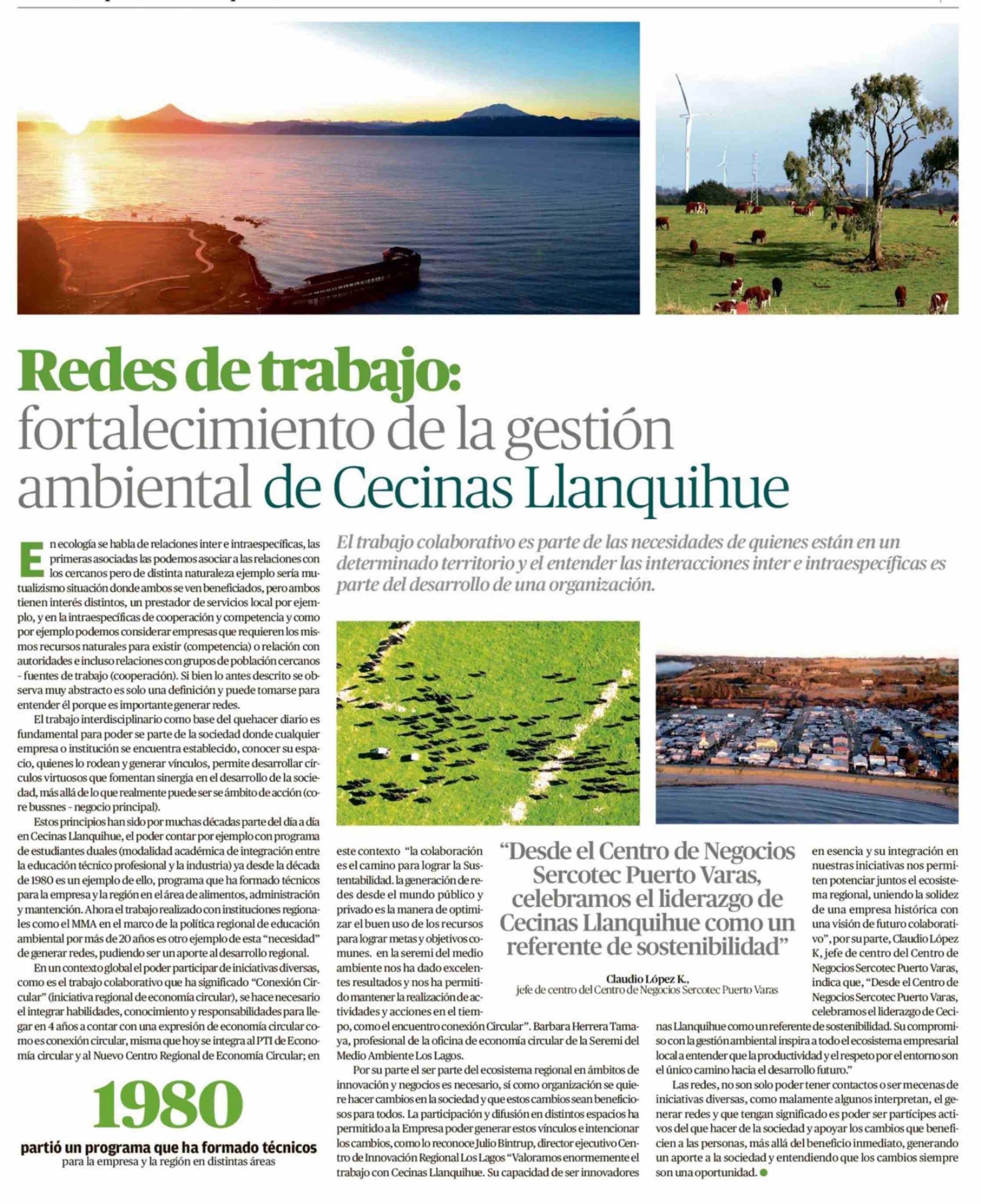 Redes de trabajo: fortalecimiento de la gestión ambiental de Cecinas Llanquihue 15-02-2026 El Llanquihue |
