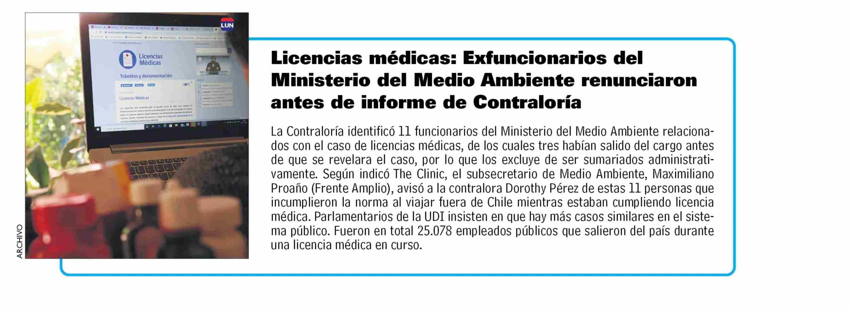 | Título: | Licencias médicas: Exfuncionarios del Ministerio del Medio Ambiente renunciaron antes de informe de Contraloría |