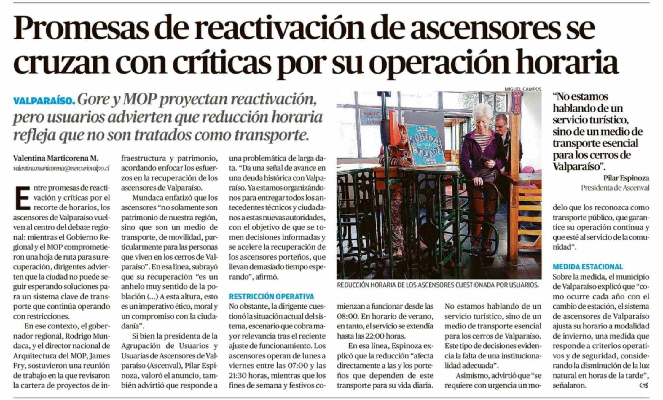 Título: Promesas de reactivación de ascensores se cruzan con críticas por su operación horaria