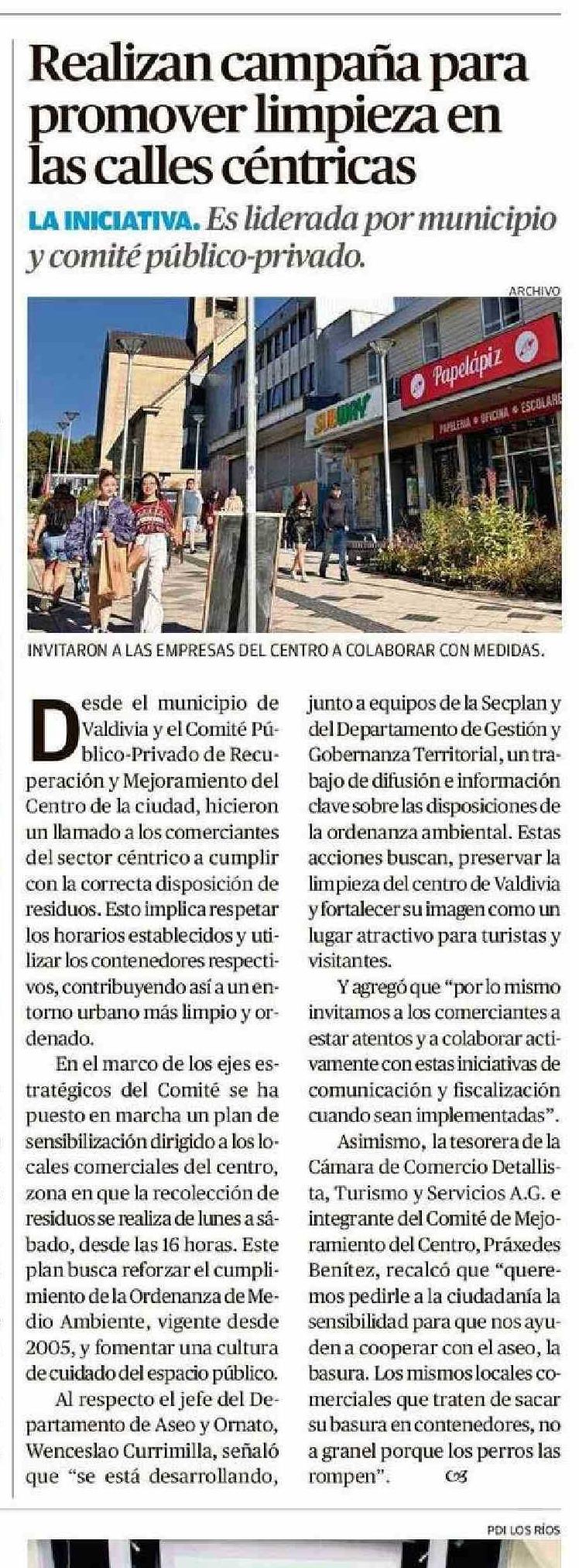 Realizan campaña para promover limpieza en las calles céntricas 05-02-2025 Diario Austral Región de Los Ríos |