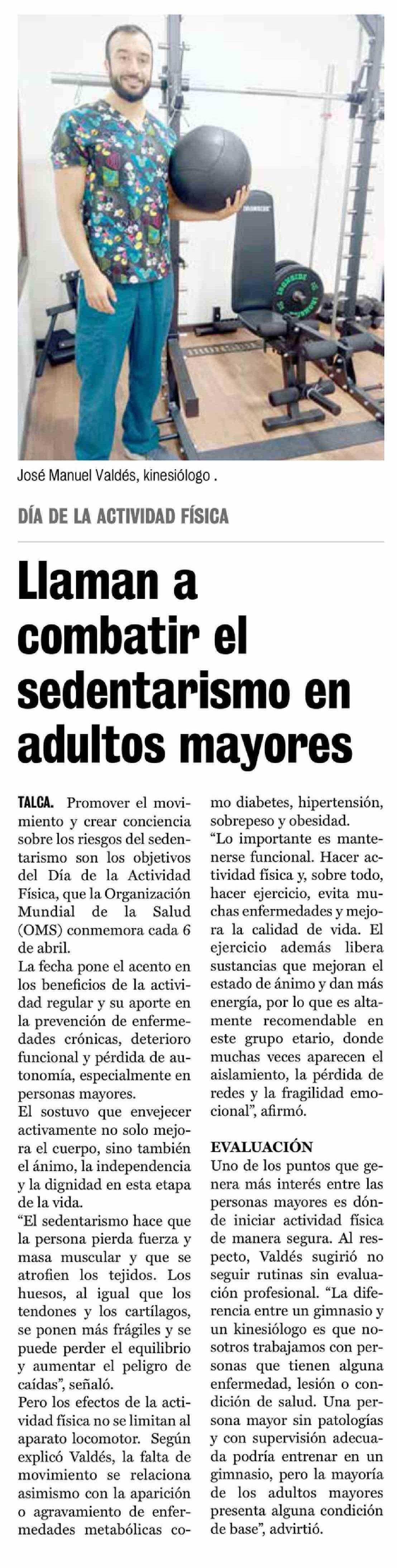 Llaman a combatir el sedentarismo en adultos mayores 06-04-2026 La Prensa de Curicó |