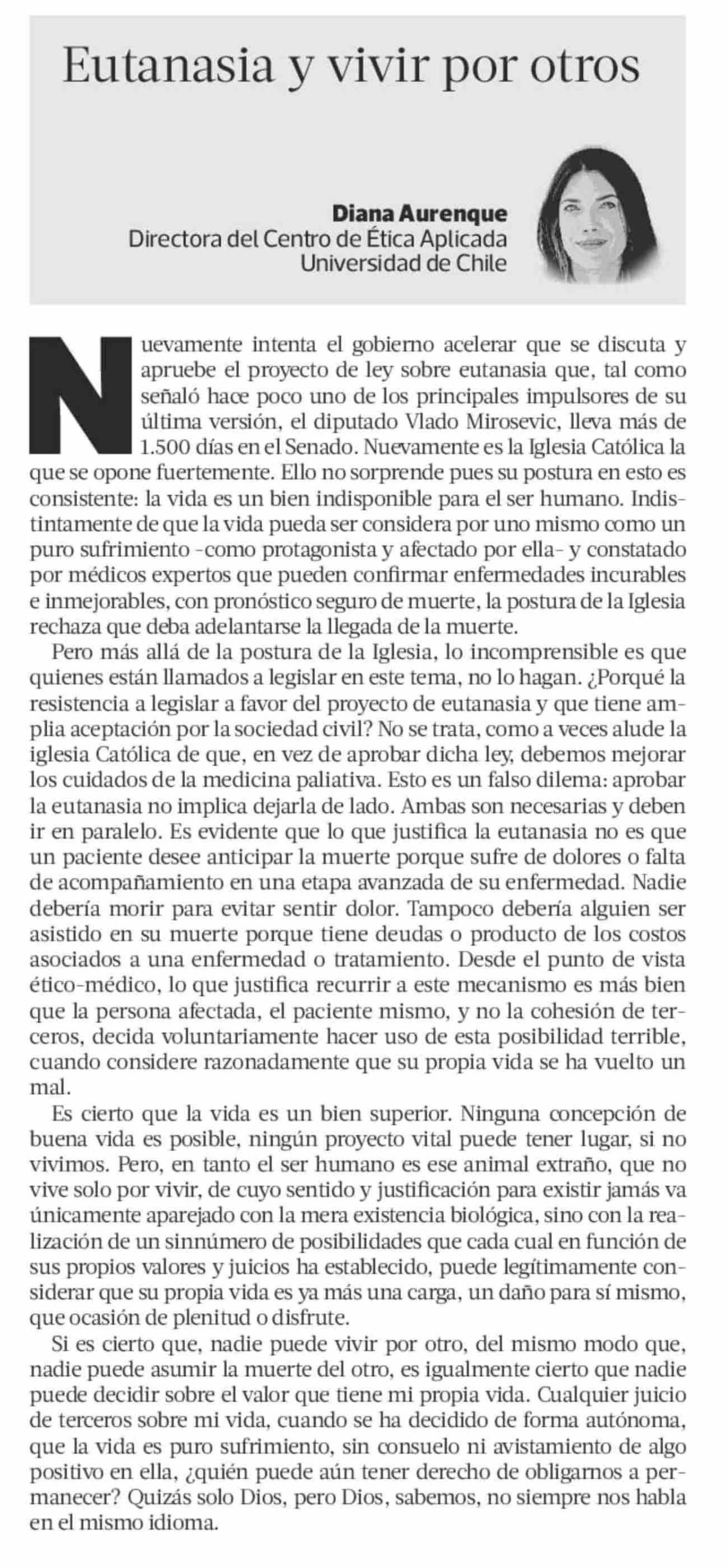 | Título: | COLUMNAS DE OPINIÓN: Eutanasia y vivir por otros |