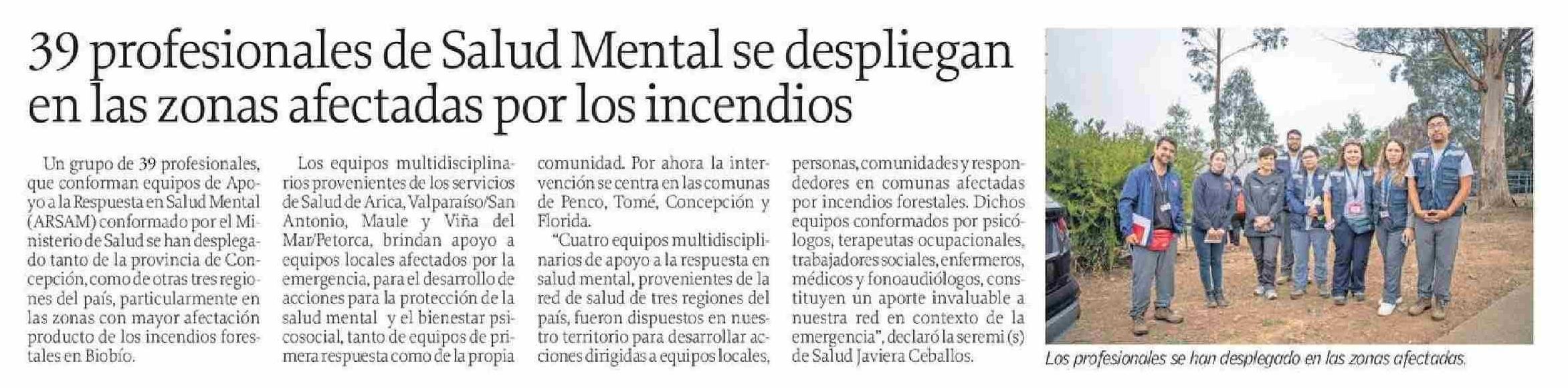 39 Profesionales de Salud Mental se despliegan en las zonas afectadas por los incendios 22-01-2026 El Sur |