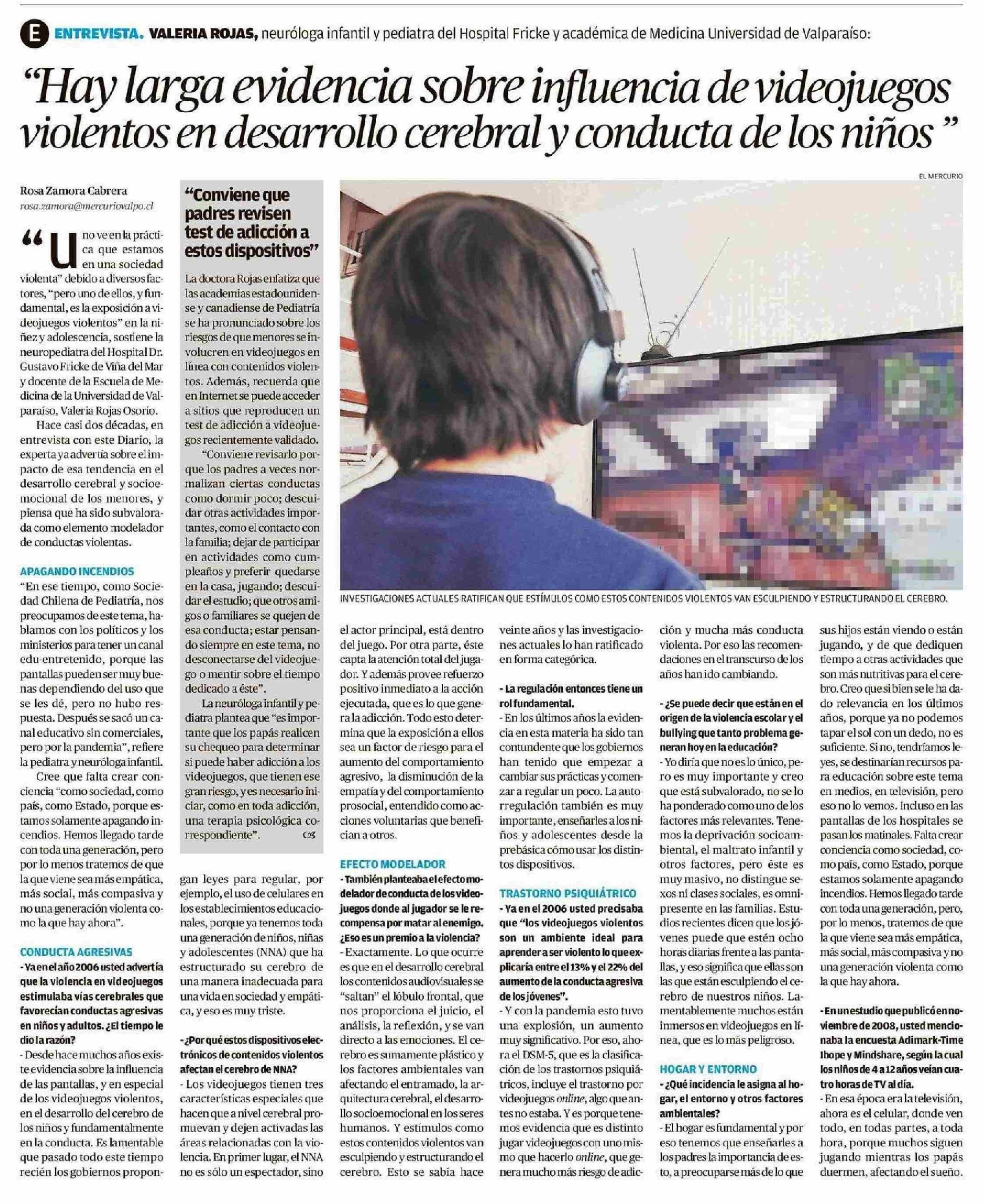 | Título: | "Hay larga evidencia sobre influencia de videojuegos violentos en desarrollo cerebral y conducta de los niños " |